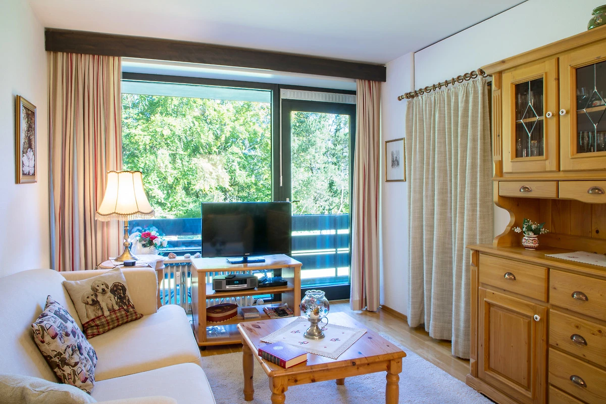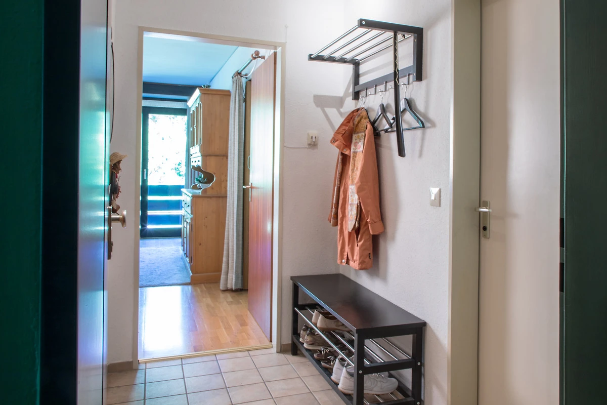 Im Wohnzimmer befindet sich ein moderner Fernseher mit einem Amazon TV-Stick und einem DVD-Player. Unter dem Fernseher steht eine Stereoanlage von Bose mit DVD-Laufwerk. Die gemütliche Coach kann zu einem Doppelbett (140×190) ausgezogen werden. Vom Wohnzimmer gelangt man auf den grossen Balkon. Dieser ist mit 2 bequemen Gartenstühlen und einem Tisch ausgestattet. In der Ecke steht ein Wäscheständer für die nassen Badesachen.