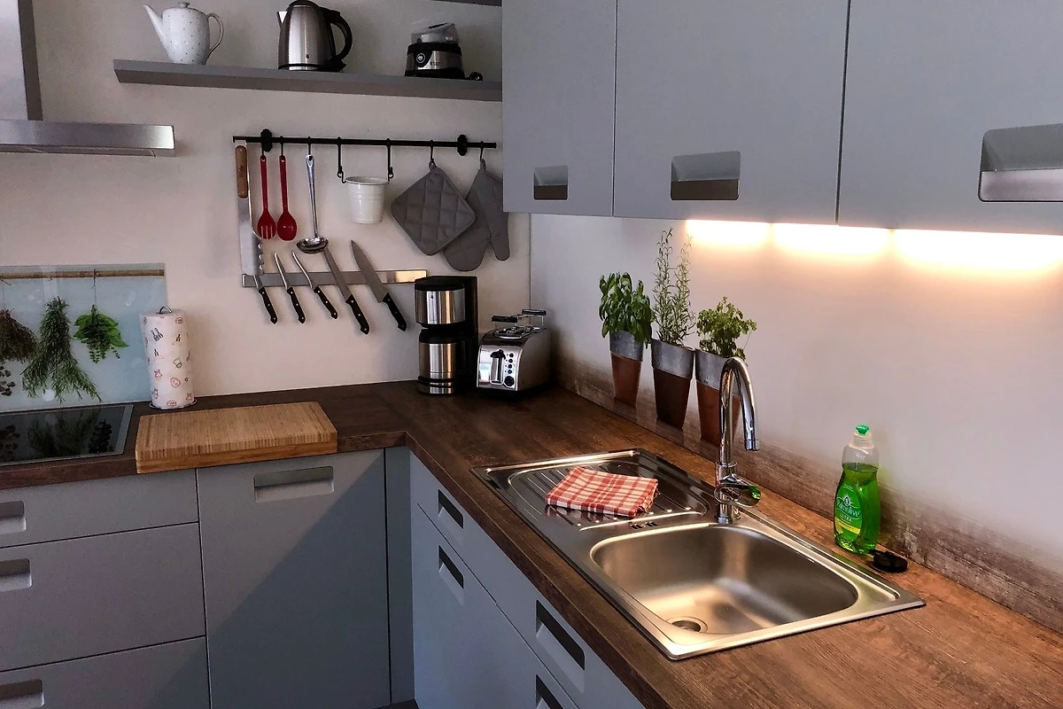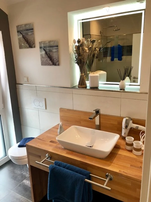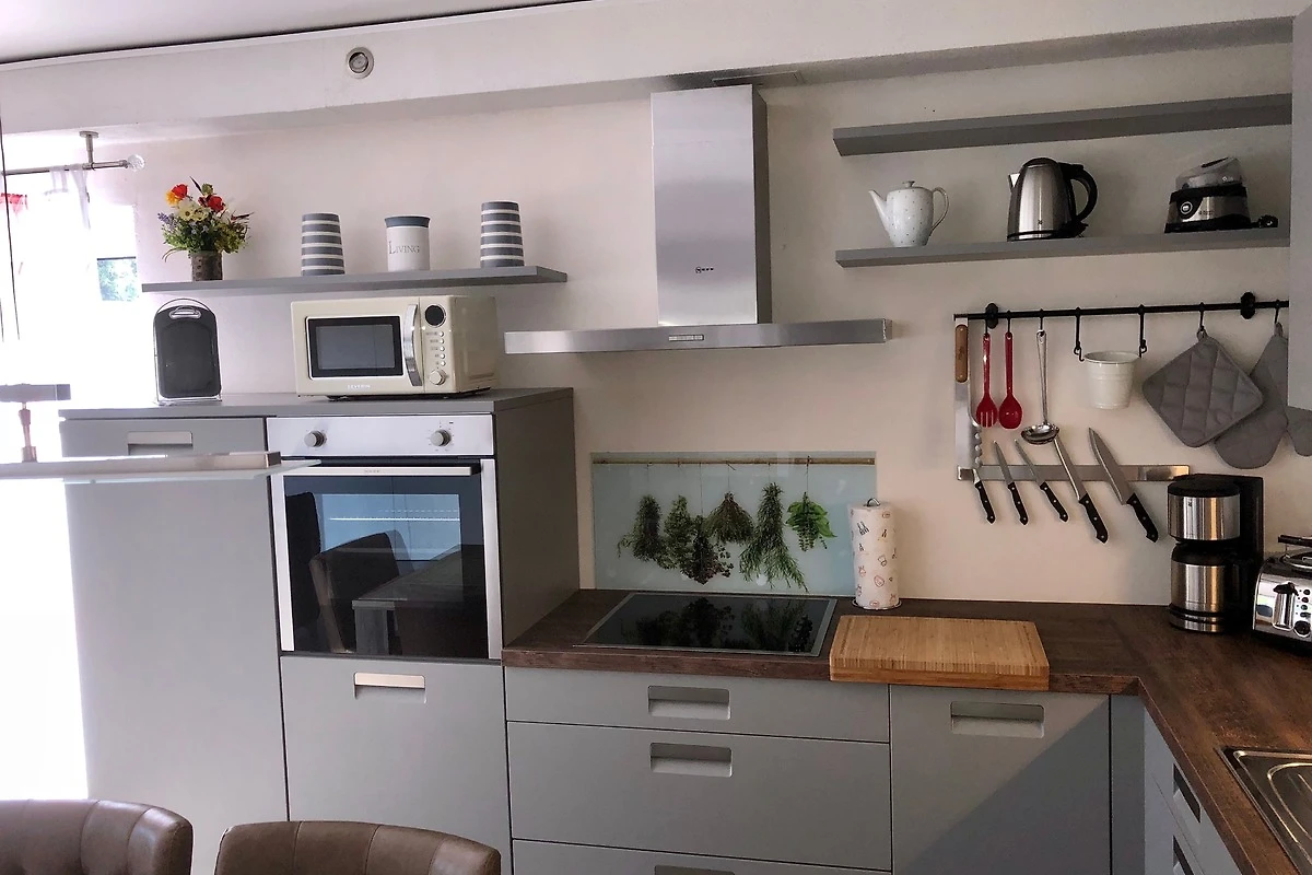 Das Haus mit Gartenblick verfügt über Parkett, 2 tolle Küchen, 4 Schlafzimmer mit Boxspringbetten und je einem Einzelbett als Aufbettung und 4 Bäder. In jedem Schlafzimmer und in den Wohnzimmern haben Sie einen TV mit Sat-Empfang.