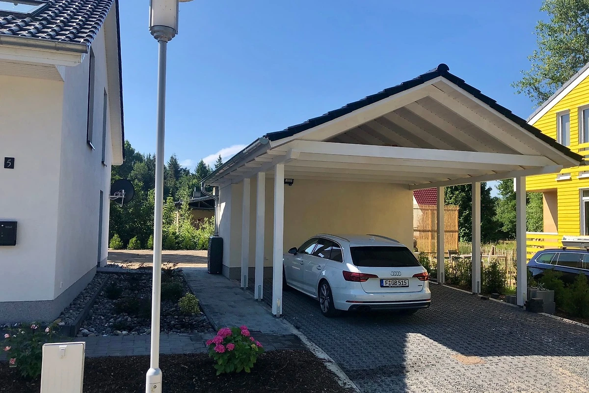 Am Haus können Sie einen Carport nutzen. Dieser bietet für Sie kostenfreien Platz für 2 Fahrzeuge.