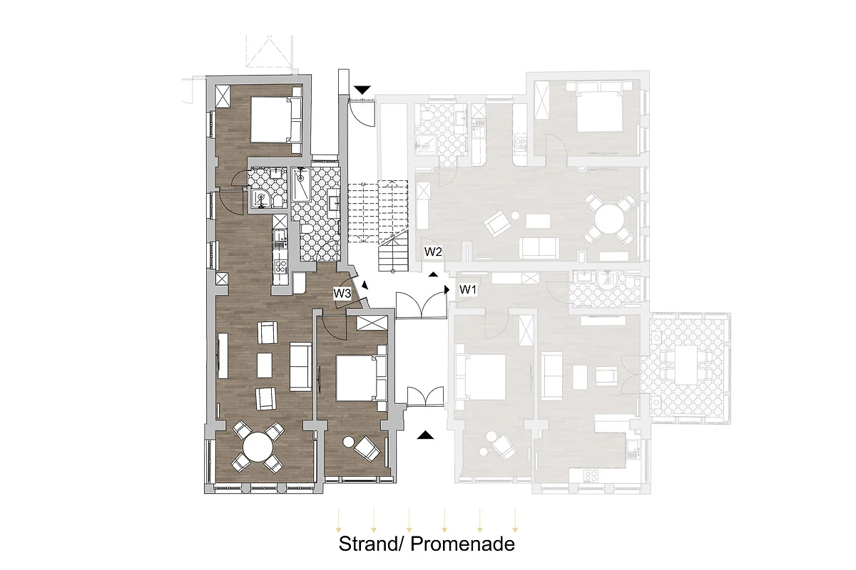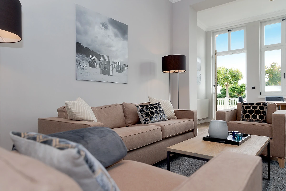 Die Wohnung "Wolgastsee" bietet mit ihren 3 Zimmern und ca. 80 qm für bis zu 4 Personen Platz in einem stilvollen, hellen und modernen Ambiente. 2 separate Schlaf- und Badezimmer ermöglichen eine flexible Belegung. Geniessen Sie den Meerblick über grosse Fensterfronten. Die zur See ausgerichteten, ehemals offenen Veranden wurden für die jahreszeitunabhängige Nutzung ansprechend verglast in die Wohnung integriert. Ein vollausgestatteter Küchenbereich lädt zum gemeinsamen Kochen ein. Haustiere sind in dieser Einheit willkommen.