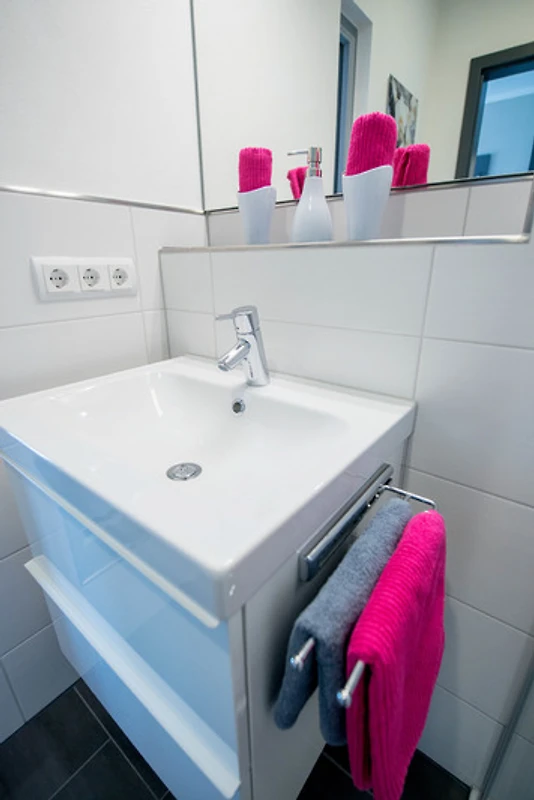 Bad-Extras: teilweise mit zusätzlicher Badewanne (bitte anfragen), Pflegeprodukte (Handseife+Dusch-Shampoo)