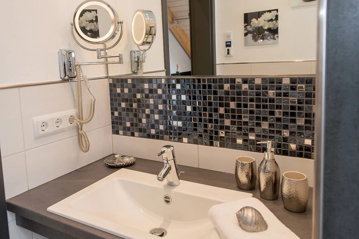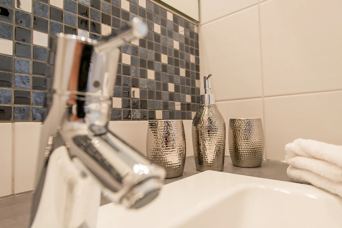 Bad-Extras: Duschradio, Kosmetikspiegel, Pflegeprodukte (Handseife+Dusch-Shampoo), Handtuchwechsel auf Wunsch