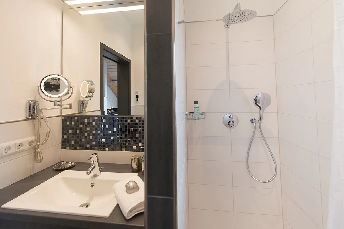 Premium-Bad mit Dusche, Waschbecken und WC & Premium-Ausstattung