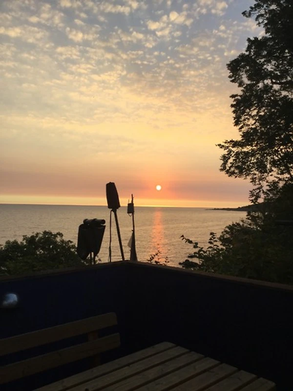 Vom Wohnzimmerfenster aus geniesst ihr einen einzigartigen Blick auf die Ostsee und die Erbseninseln Christiansø und Frederikssø, während Segelschiffe vorbeiziehen – ein buntes Farbenspiel.