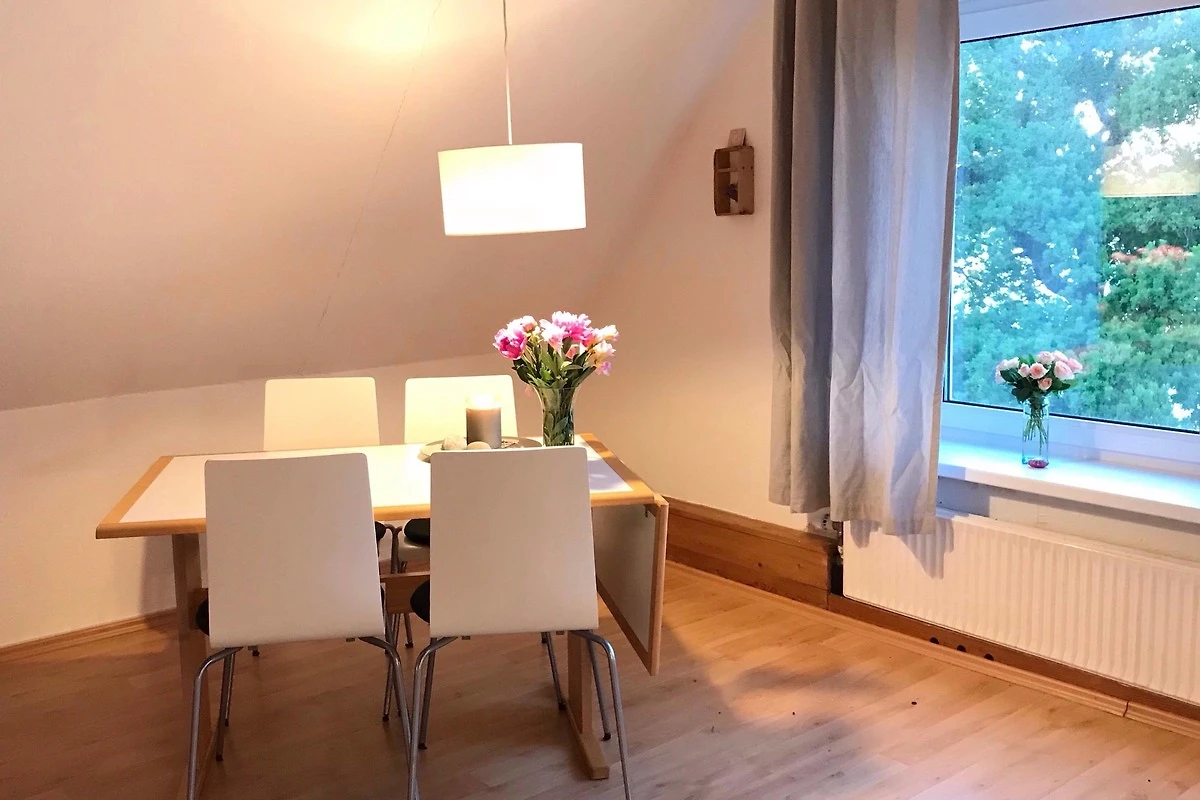 Die Ferienwohnung "Gudhjem" befindet sich im Dachgeschoss, verfügt über einen eigenen Eingang und ist über eine Treppe zugänglich.