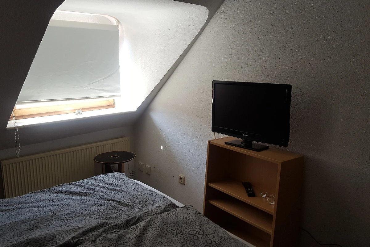 Die ca. 30qm grosse Wohnung befindet sich im dritten Stock des Gebäudes und ist bequem und behindertengerecht mit dem Fahrstuhl zu erreichen. Die Wohnung hat ein abgetrenntes Schlafzimmer mit grosszügigem Boxspringbett, Kleiderschrank und einem Fernsehen im Schlafzimmer. Daneben ist ein kleiner Wohn-/Essbereich mit integrierter Küche, ebenfalls mit einem Fernseher. Ausserdem gibt es ein Badezimmer mit Dusche.