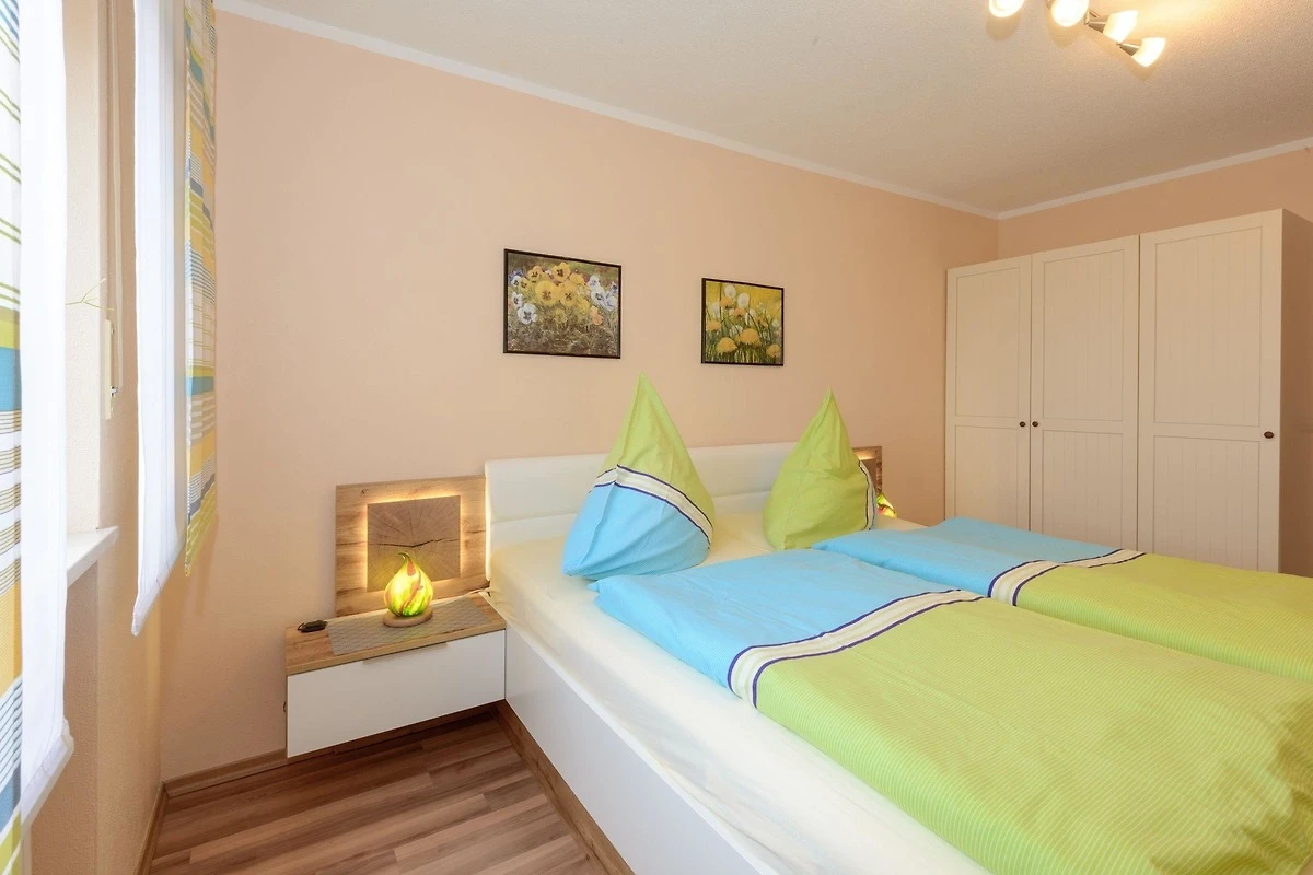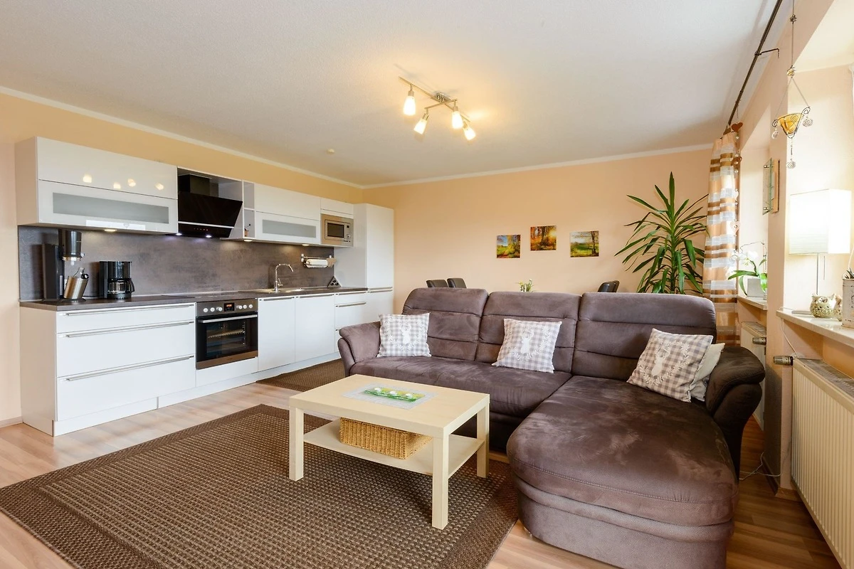 Die Ferienwohnung ist ca. 58 qm gross und besitzt eine vollständige Ausstattung mit Elektrogeräten wie z.B. Radio DVD und SAT-TV . Eine Wohnküche mit Essecke, Küchenzeile mit Kaffeemaschine, Kühlschrank sowie Herd mit Backofen sowie ein Schlafzimmer mit Doppelbett und ein Bad mit Dusche ,Badewanne und WC ermöglichen Ihnen einen Urlaub in wohnlicher Atmosphäre.