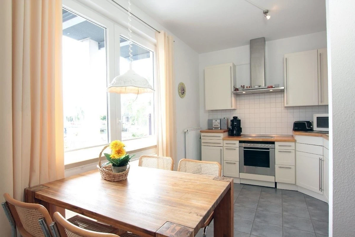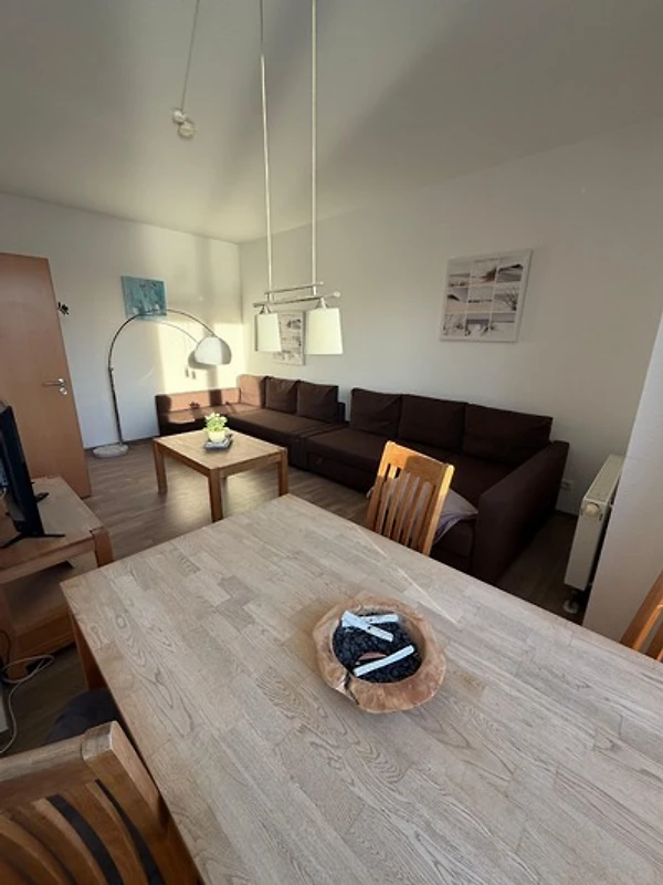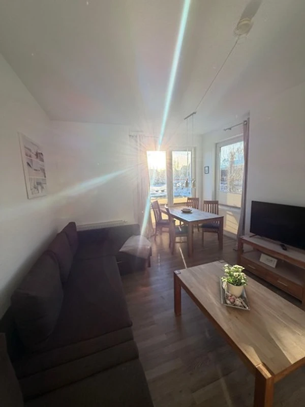 Die 63qm komfortable Ferienwohnung bietet ein Wohnzimmer ,ein Schlafzimmer, Küche und Badezimmer. Die Küche ist ausgestattet mit einem Backofen, Geschirrspülautomat, Kühlschrank / Gefrierfach und Ceranfeld. Im Wohnbereich stehen 2 Schlafsofas für je 2 Personen (ca. 160cm breit) und ein Fernseher zur Verfügung. Im Schlafzimmer bieten wir Ihnen ein Doppelbett mit TV. Bettwäsche und Handtücher sind im Preis inklusive. Es kann bei Bedarf ein Gästebett aufgestellt werden, die Waschmaschine kann auf Anfrage gegen Aufpreis gemietet werden und ein Babyreisebett u Hochstuhl ist auf Anfrage buchbar. Im Badezimmer steht Ihnen eine Dusche zur Verfügung, ebenfalls sind Handtücher, Seife, Toilettenpapier und 1 Fön vorhanden. Mit einem herrlichem Blick von der Terrasse können Sie das Hafengeschehen betrachten.