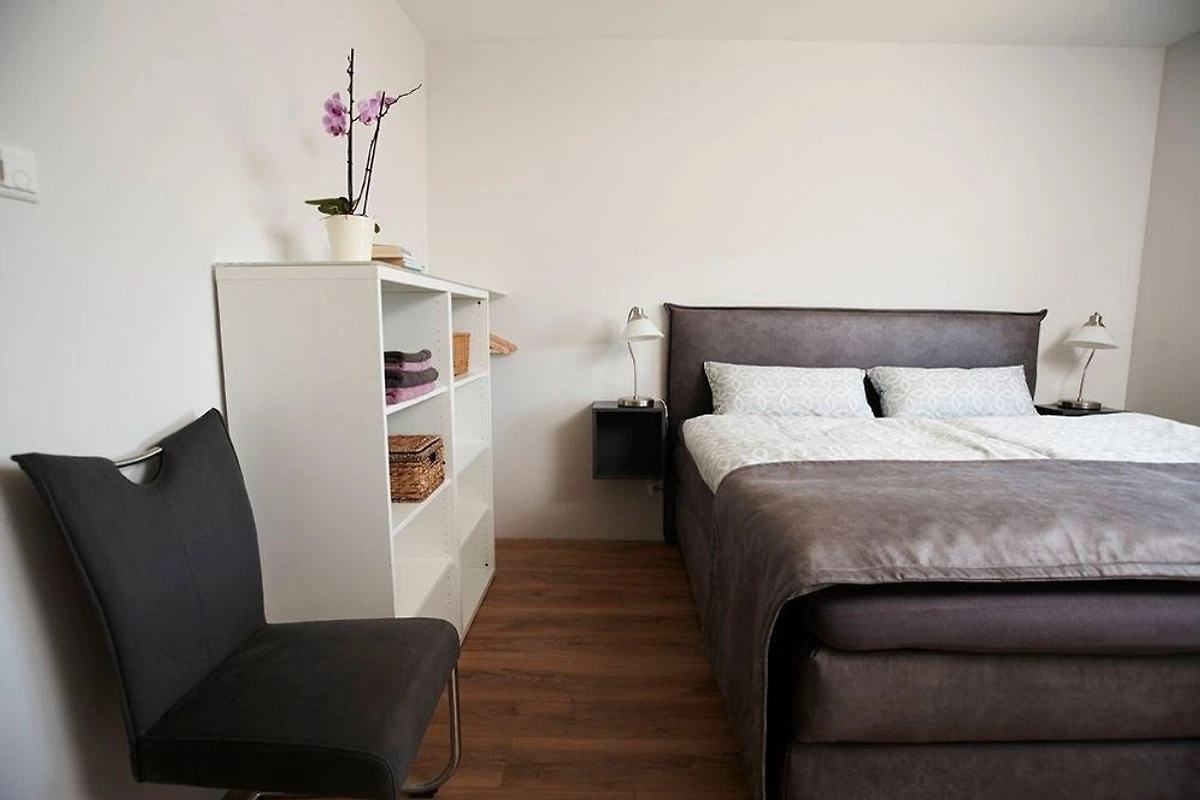 Wir bieten Ihnen ein 20m2 grosses, hell und hochwertig eingerichtetes Doppelzimmer mit Kingsize Boxspringbett (Nackenkissen auf Wunsch), modernes Bad mit barrierefreier Dusche und separatem Eingang. Ausserdem erwartet sie eine gemütliche, voll eingerichtete Wohnküche mit Geschirrspüler. 49 Zoll Smart TV mit Netflix, Prime Video, und Waipu-TV und superschnelles W-LAN (40Mbit) sorgen für gute Unterhaltung und entspannende Abendstunden. Zimmer, Duschbad und Wohnküche sind barrierefrei zu erreichen. Ebenfalls vorhanden sind Rollläden und Fliegengitter.