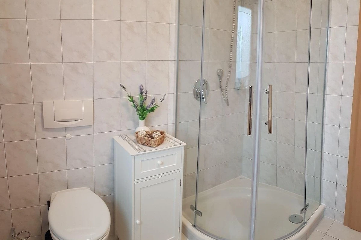 - Bad mit Dusche, WC, Waschbecken, Föhn