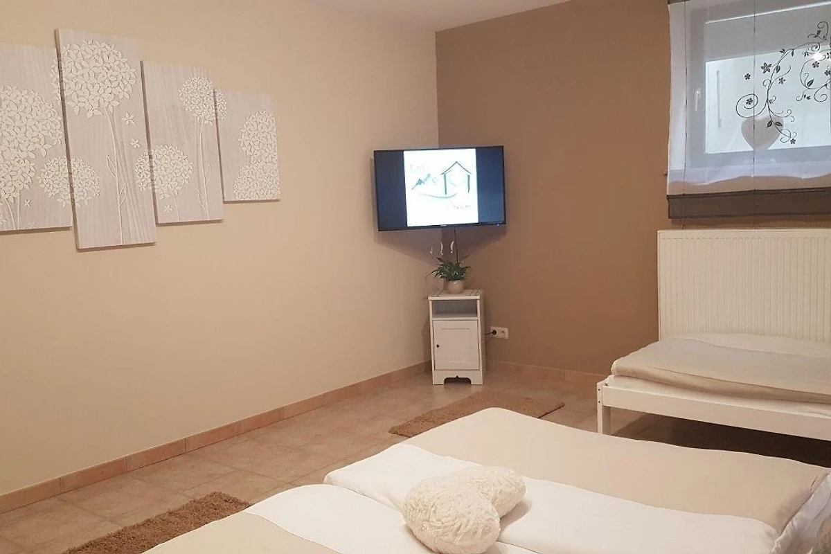 - 1 Schlafzimmer mit 4 Betten sowie TV,