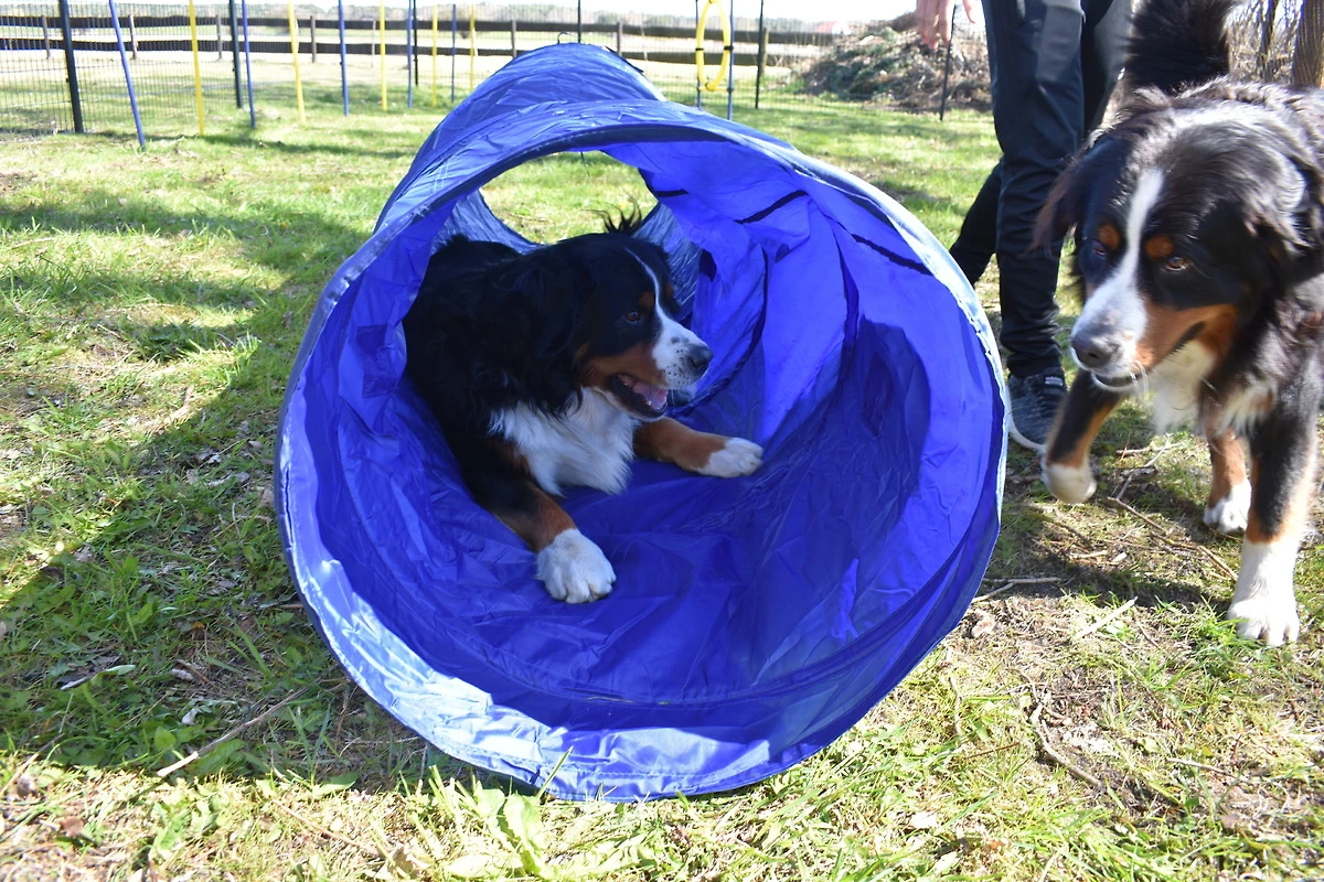 Ganz NEU ist unser Hundespielplatz auf ca. 200qm. Ein separat eingezäunter Bereich lädt zum Spielen und Toben ein. Agility Geräte stehen Ihnen zur Verfügung.