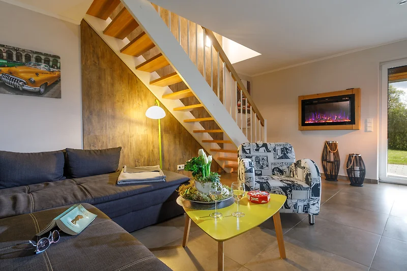 mit Schlafcouch (für 1–2 Personen), Fussbodenheizung, Flachbild-TV und virtuellem Kamin.