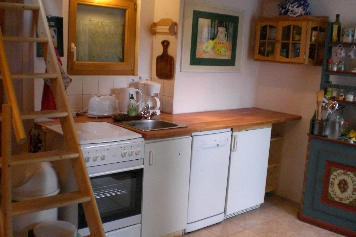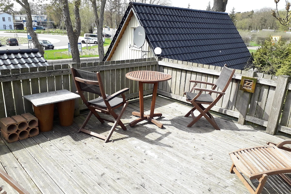 Die ca. 100 m² Wohnfläche des Hauses ist auf zwei Etagen verteilt: Im Erdgeschoss befinden sich das grosse Wohnzimmer (30 m²), ein Schlafzimmer, Küche und Bad. Im Dachgeschoss befindet sich ein weiteres geräumiges Zimmer (30 m²) mit schrägen Wänden und Dachterrasse, die einen wunderschönen Ausblick auf Hafen und Prerower Strom sowie das Umland bietet.