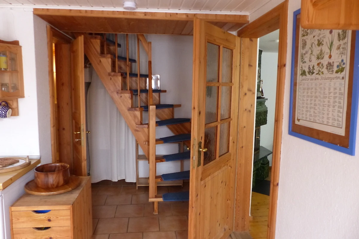 Die ca. 75 m² Wohnfläche verteilt sich über zwei Etagen, einschliesslich der ca. 20 m² grosser Sommerveranda. Im Erdgeschoss befindet sich das gemütliche Kaminzimmer, die grosszügige, gut ausgestattete Küche und ein modernes Bad mit Dusche. Die geräumige Sommerveranda bietet bereits im Frühjahr und bis in den Herbst die Möglichkeit zu gemütlichen Runden im "fast Freien" mit Blick auf die Pferdekoppeln.