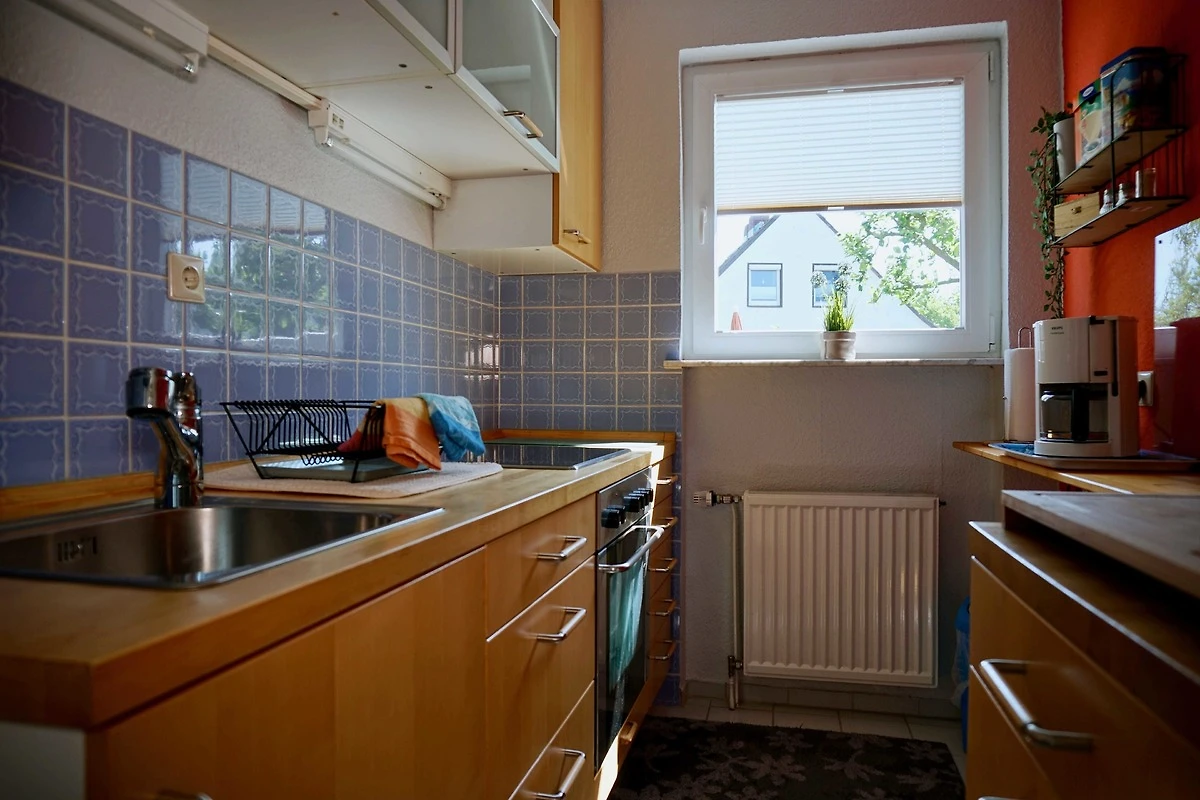 Im Wohnzimmer befindet sich ein weiteres Fernsehgerät, ausserdem noch ein ausziehbares Sofa. Ein Schrankbett lässt sich bequem als zweiter Schlafplatz herrichten. Der Essbereich im Wohnzimmer lädt zum geselligen Schmausen ein. Die Küche befindet sich in einem separaten Raum und ist so ausgestattet, dass Sie hier nach Herzenslust auch einmal unsere regionalen Speisen zubereiten können.