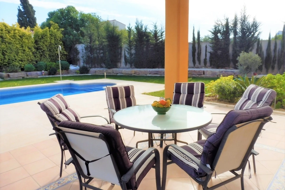 Die Villa befindet sich auf einem komplett abgeschlossenen Grundstück und bietet Parkmöglichkeiten für mehrere Autos, einen grossen privaten Garten und einen privaten Pool von ca. 10X5m mit mehreren Sonnenliegen und Dusche.