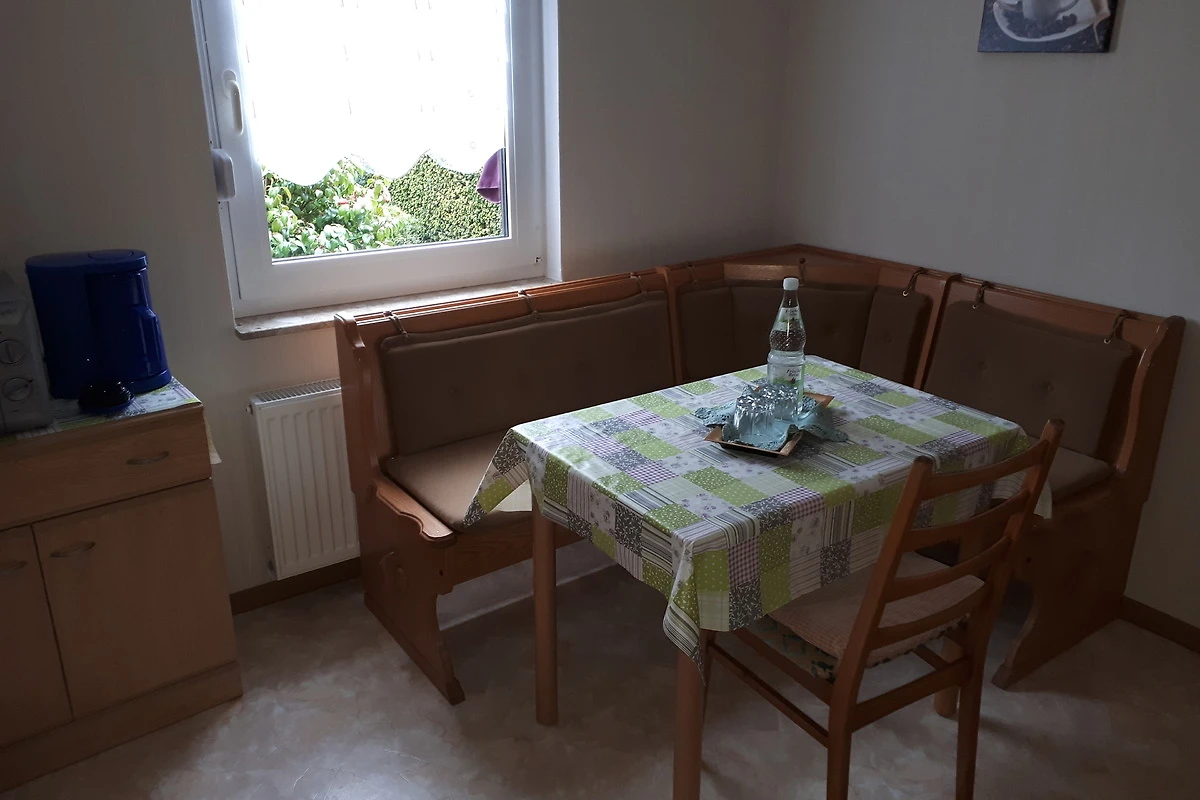 Auch unsere Wohnung " Tide " im Erdgeschoss empfängt sie mit einem eigenständigem Wohnzimmer, einer Küche, ein Bad und 1 Schlafzimmer für insg. 2 Personen und 1 Kleinkind. Auf Wunsch mit Kinderbett. Ihr Auto stellen sie direkt an der Wohnung auf unserem Privatgrund ab.