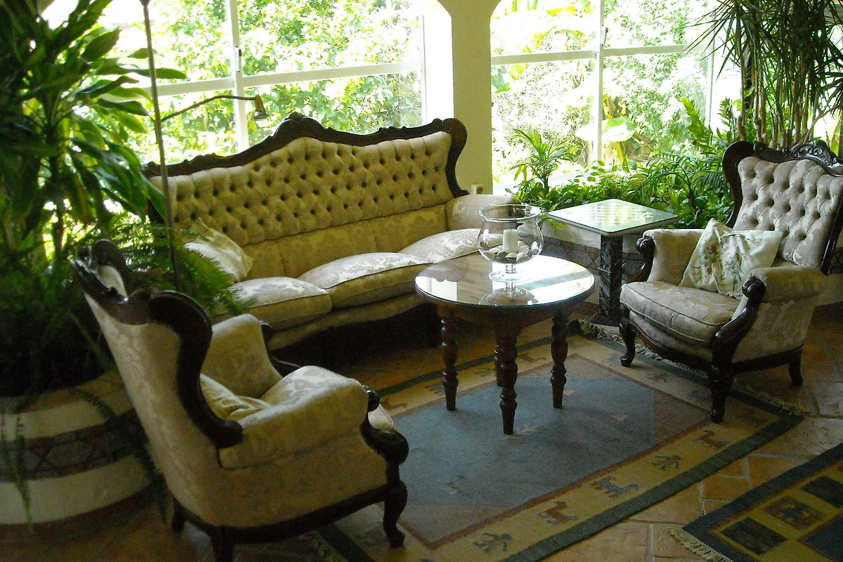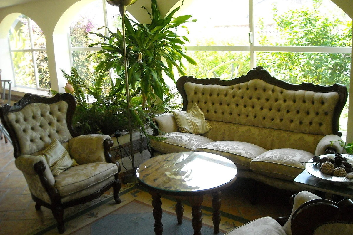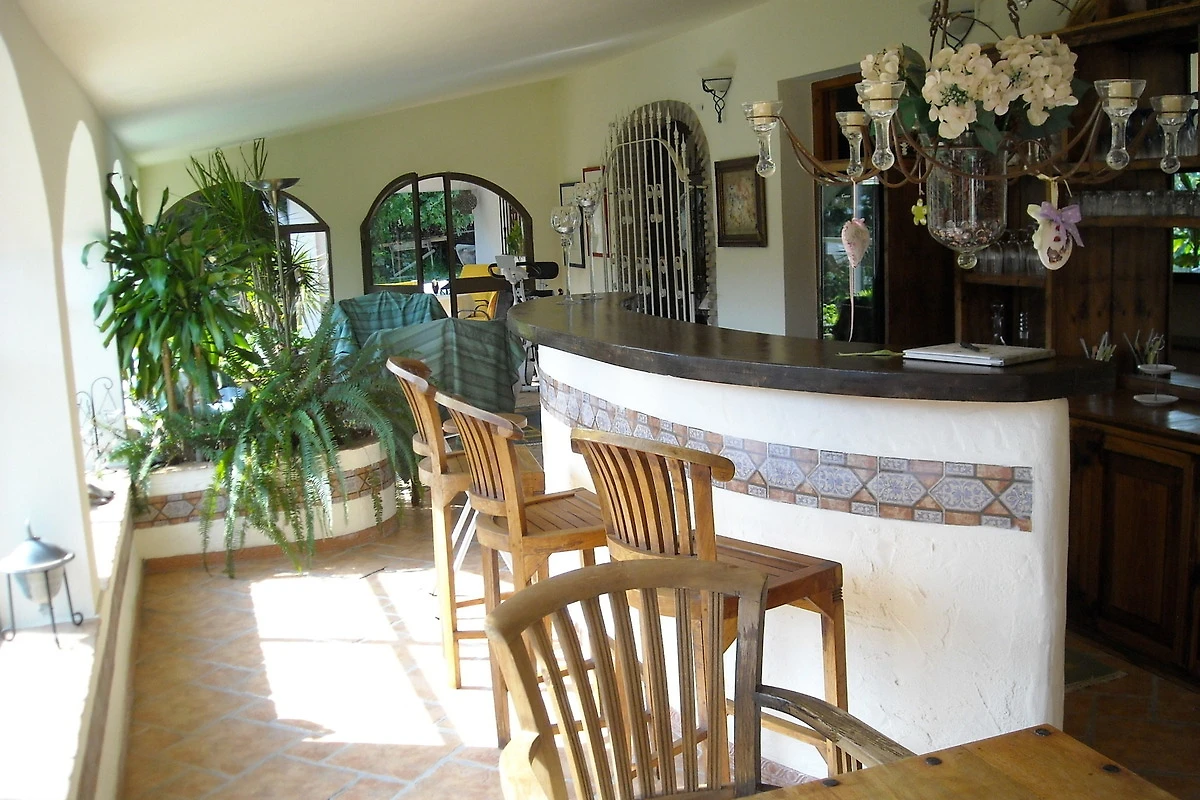 Die Finca hat ca. 150 m² und liegt auf einer Ebene mit jeweils einer Stufe zum Wintergarten und von der Küche zur Terrasse mit Pool, einen Wintergarten mit Bar, Sitzecke und Essbereich, mit direkter Verbindung zum Wohnzimmer und der Küche.