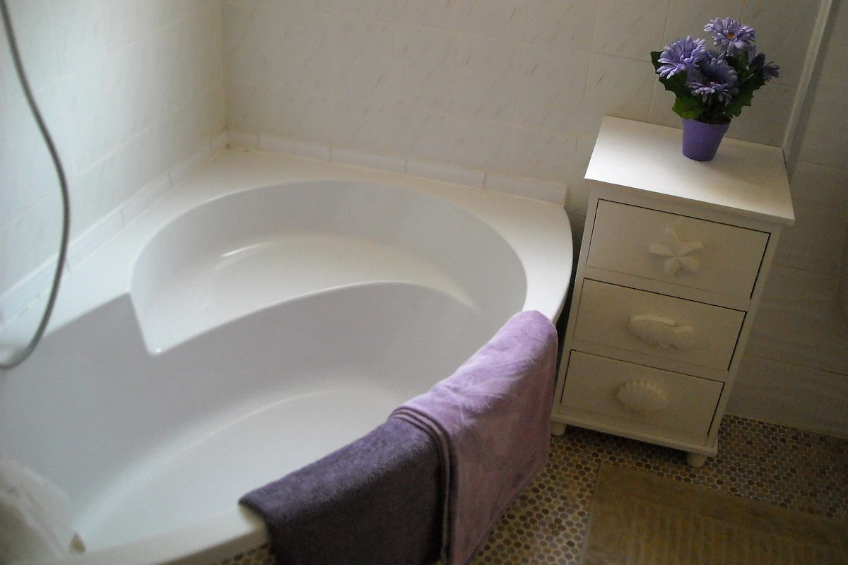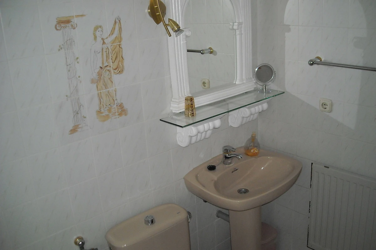 Von den drei Bädern ist das grössere Bad mit einer Badewanne, Dusche und Pissoir ausgestattet. Die zwei anderen Bäder mit jeweils, Dusche Toilette und Waschbecken. Waschmaschine und Trockner befinden sich im Durchgang/Flur.