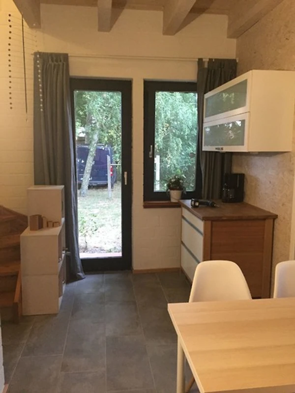 Unsere Ferienwohnung ist im Jahr 2009 fertiggestellt worden. Das wunderschöne Wohn-/Schlafzimmer im Dachraum ist mit einer grossen Glasfront ausgestattet und bietet einen weiten Blick ins Grüne . Hier wird gewohnt und traumhaft geschlafen. Im Erdgeschoss befindet sich der Windfang, das Duschbad, der Essbereich mit Austritt zur Terrasse und die individuell gestaltete Küche.