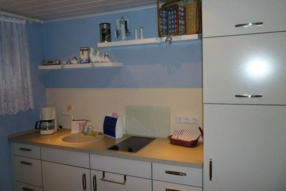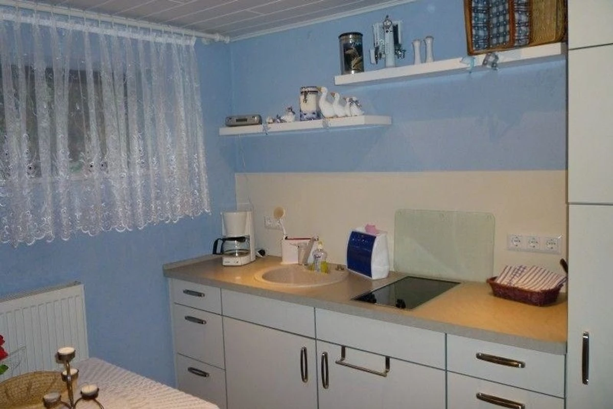 Die Ferienwohnung ist mit einem separaten Eingang, einem kombiniertem Wohn- und Schlafzimmer, einer separaten Küche mit Essplatz und einem Bad mit Dusche ausgestattet. Ausserdem ist ein separates WC vorhanden. Auf dem Grundstück können Sie den PKW-Stellplatz kostenlos nutzen. Zur weiteren Ausstattung gehören eine Kaffeemaschine, ein Toaster, ein moderner TV und ein Radio.