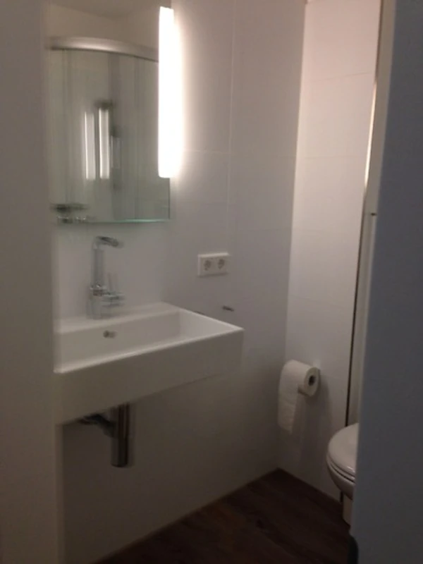 Hochwertiges Duschbad mit Handtuchwärmer und beleuchteten Spiegel.
