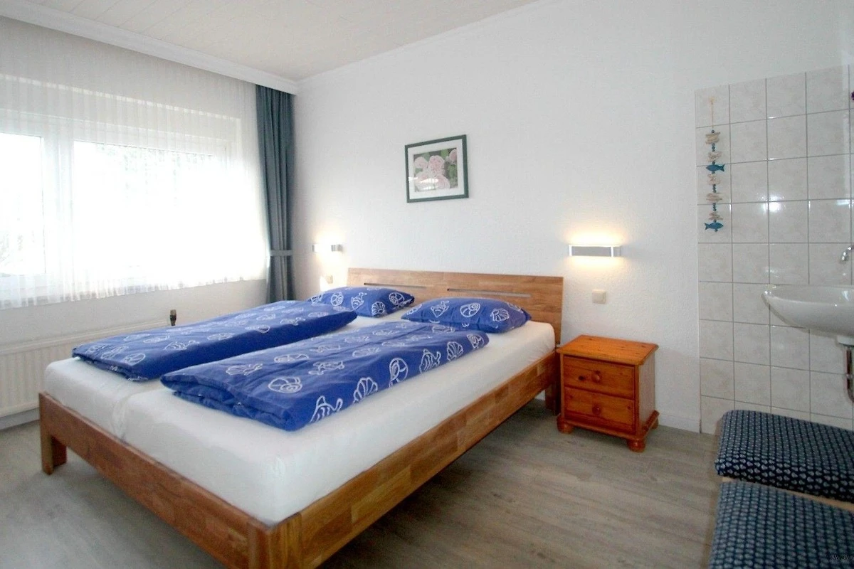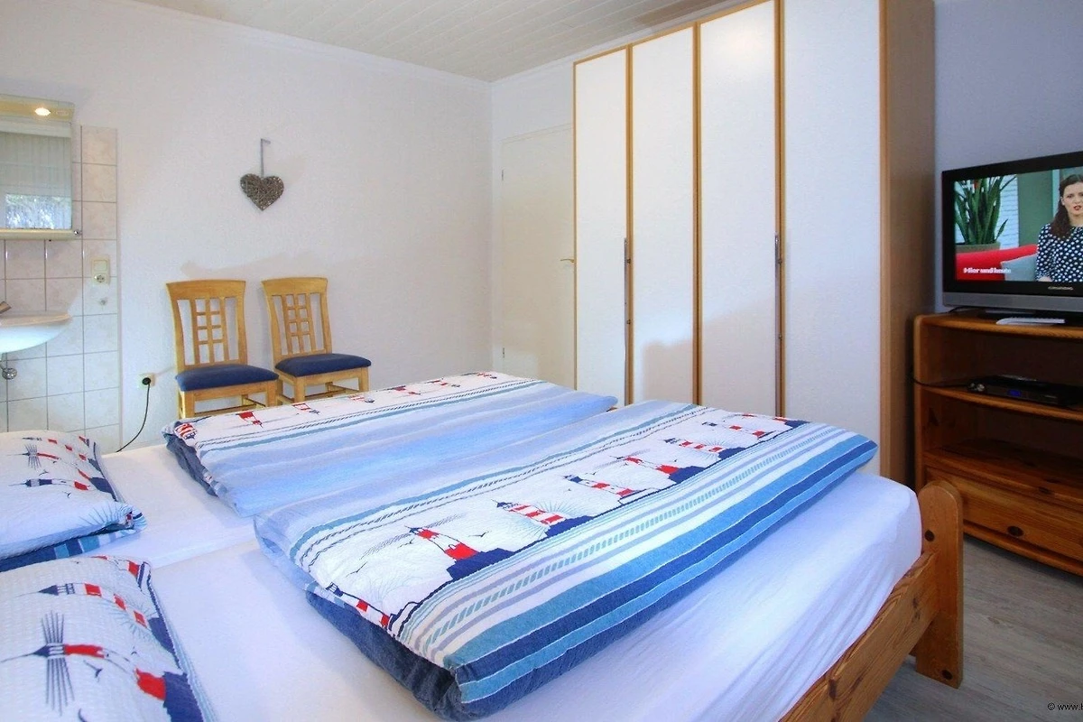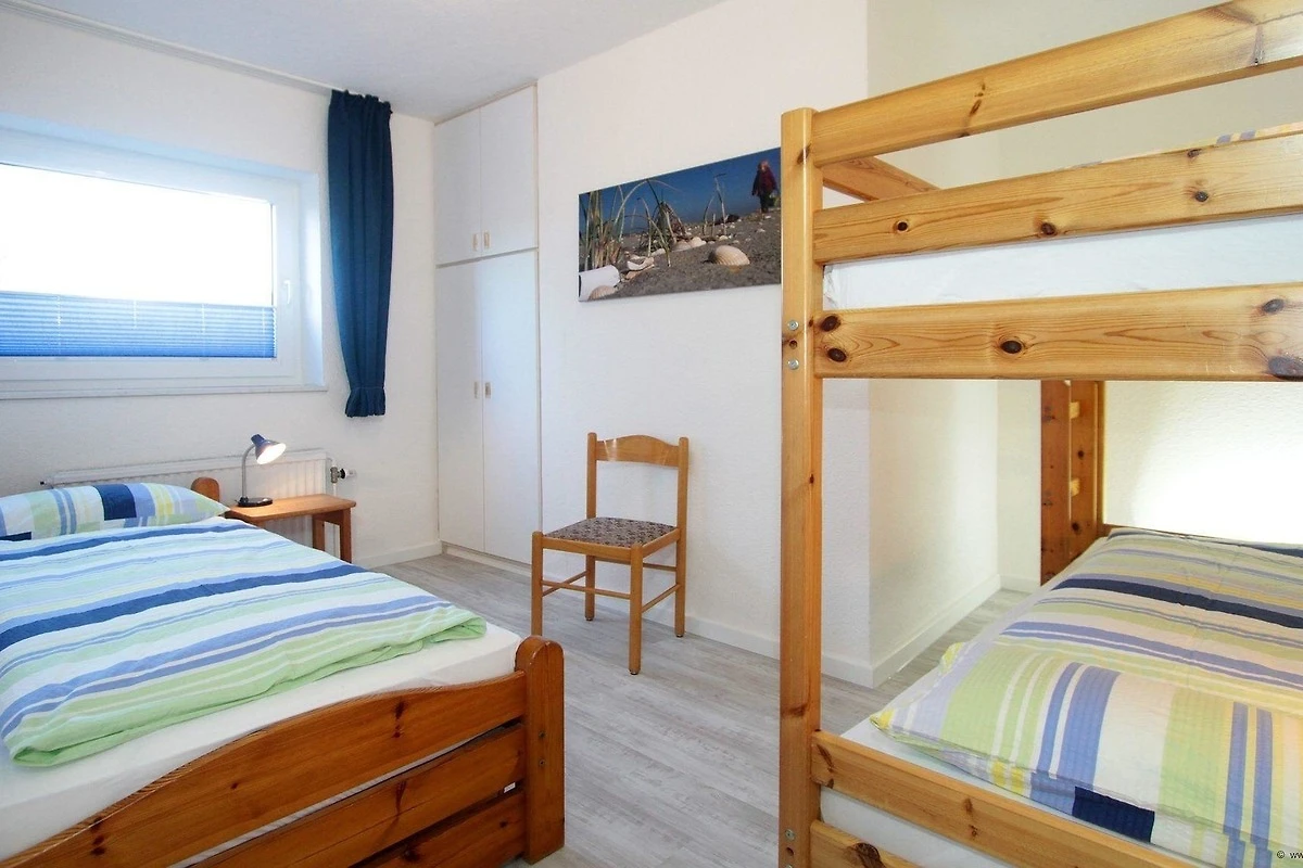 Unsere gemütliche Nichtraucher Ferienwohnung ist ideal geschnitten. Es erwartet Sie ein Schlafzimmer mit Doppelbett, Kleiderschrank, Nachttischen und Fernseher. Der Boden ist mit Laminat ausgelegt und das grosse Fenster verleiht dem Raum ein wohliges zuhause Gefühl. Das zweite Schlafzimmer ist zwei Einzelbetten eingerichtet, mit Laminatboden ausgelegt. Das Zimmer bietet auch Platz für Ihre privaten Sachen.
