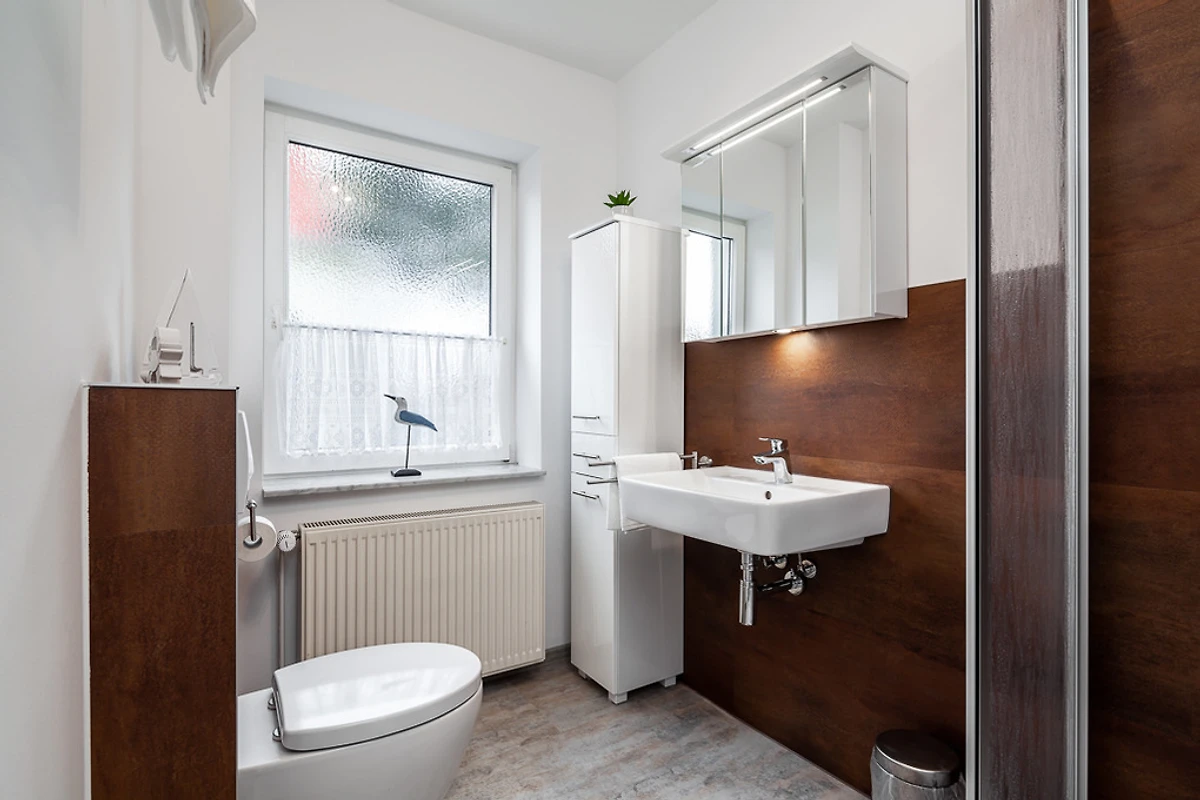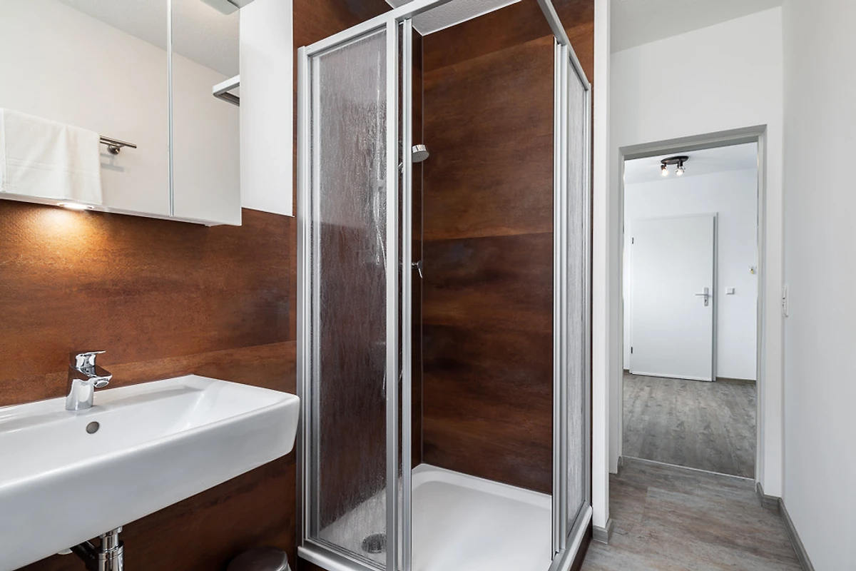 Ein neu renoviertes (2019) Bad mit Dusche steht Ihnen zur Verfügung.