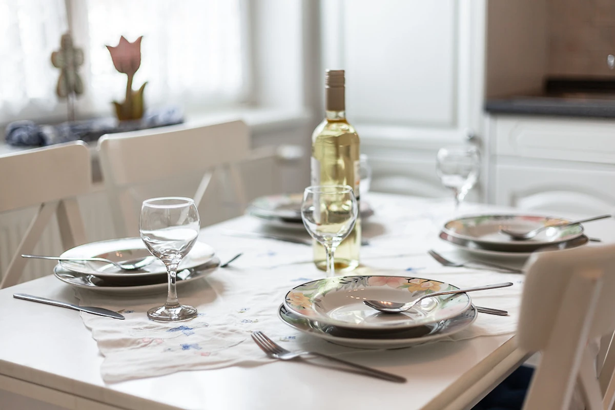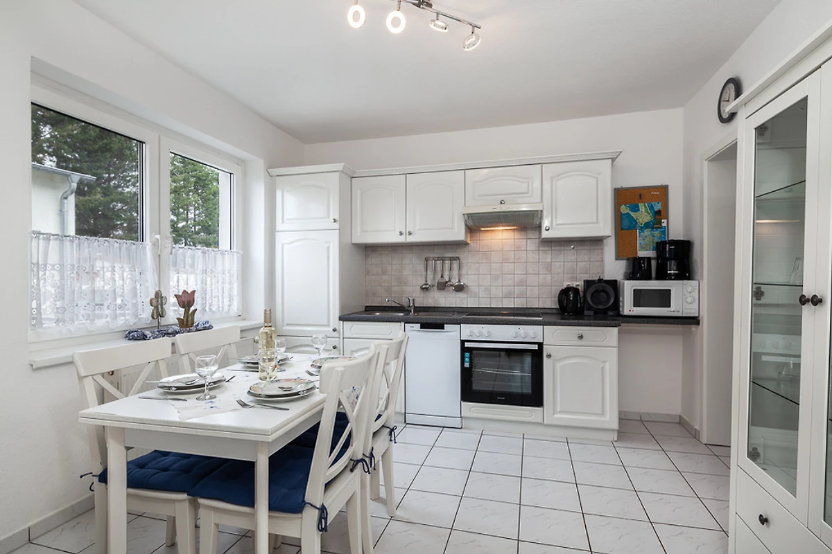 Eine separate Küche mit Esstisch ergänzen den Wohnbereich. Die Spülmaschine erledigt für Sie den Abwasch, während Sie am Strand den Sonnenuntergang geniessen können.