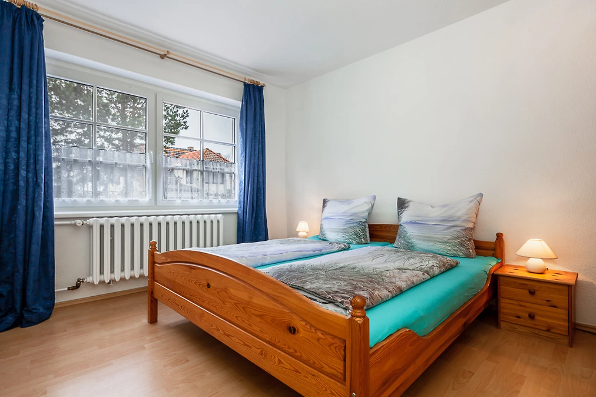 Das Schlafzimmer mit einem Doppelbett bietet Ihnen erholsame Nächte.