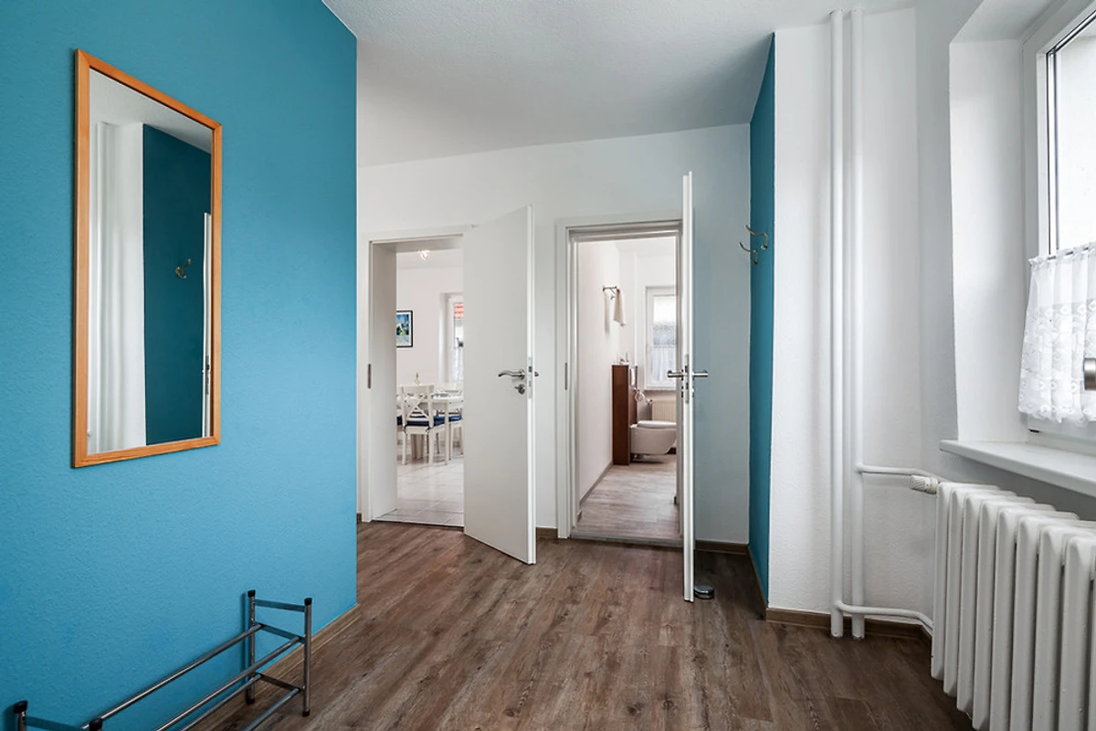 Die schöne helle Ferienwohnung mit 70qm für max. 4 Feriengäste liegt im Biosphärenreservat Südostrügen am Ortsrand des Ostseebades Thiessow, direkt an den Salzwiesen. Es sind nur 50 Meter bis zum herrlichen Naturstrand.