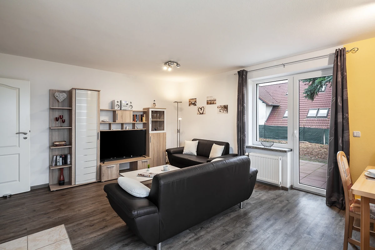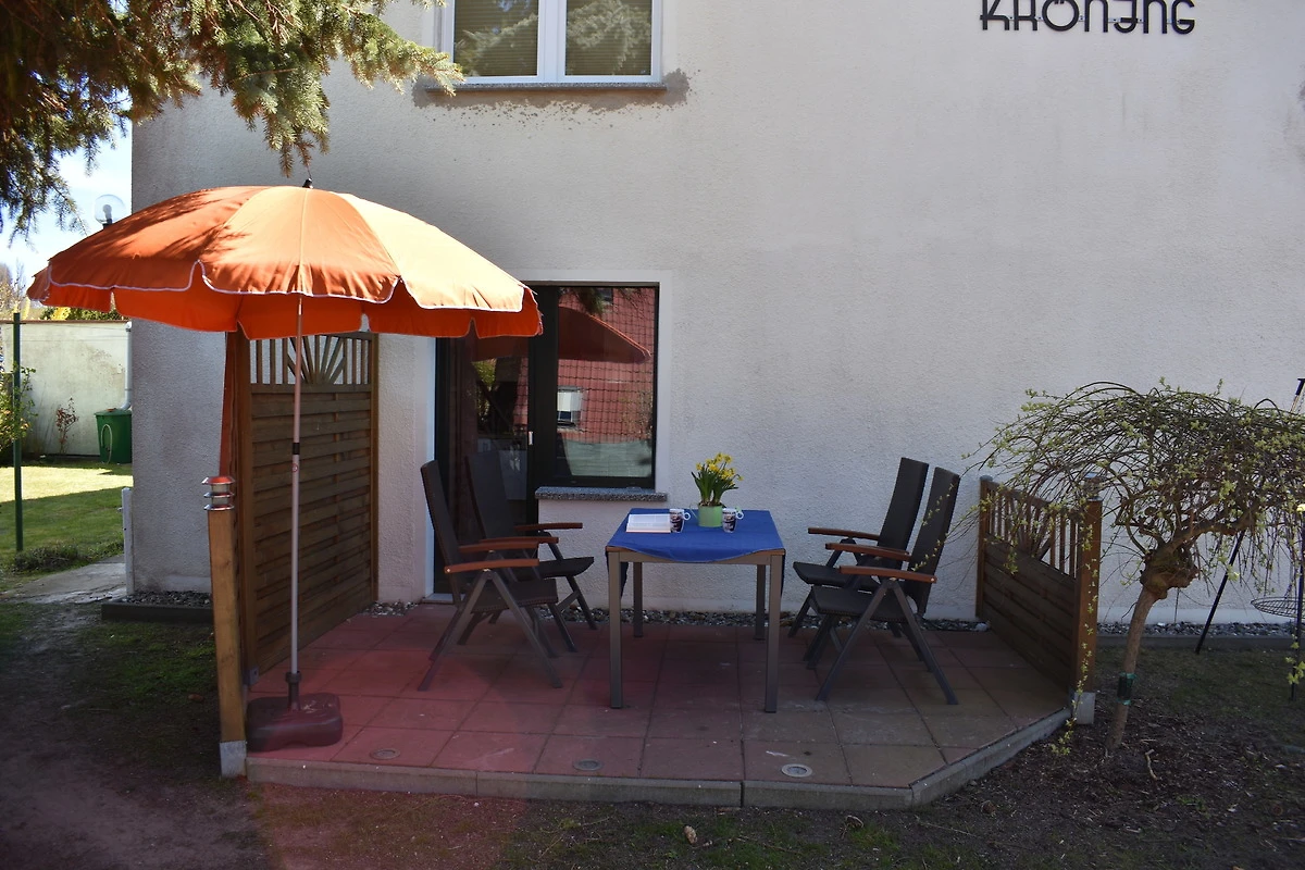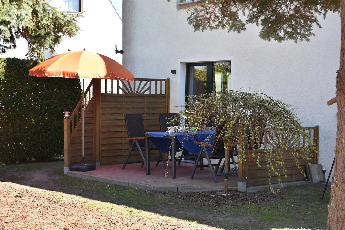Vom Wohnzimmer aus haben Sie einen direkten Zugang zu Ihrem eigenem sehr grossen eingezäunten Gartenanteil ca 150qm mit Terrasse und den entsprechenden Gartenmöbeln (Mai - September)