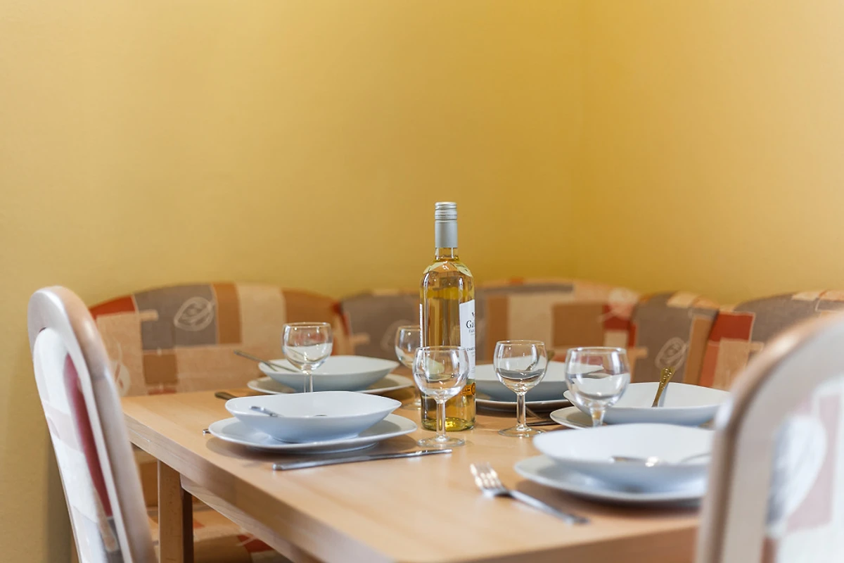 Eine grosse Küche mit Essecke ergänzen das Wohnzimmer. Die Spülmaschine erledigt für Sie den Abwasch, während Sie am Strand den Sonnenuntergang geniessen können.