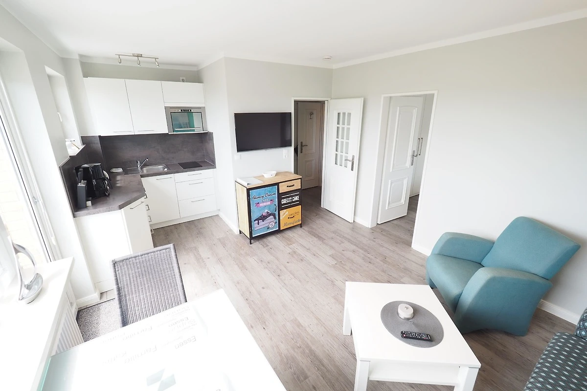 Die helle Zweizimmerwohnung befindet sich im 3. Obergeschoss eines Appartementhauses in ruihger Lage in Westerland. Der Strand ist in wenigen Minuten zu erreichen.