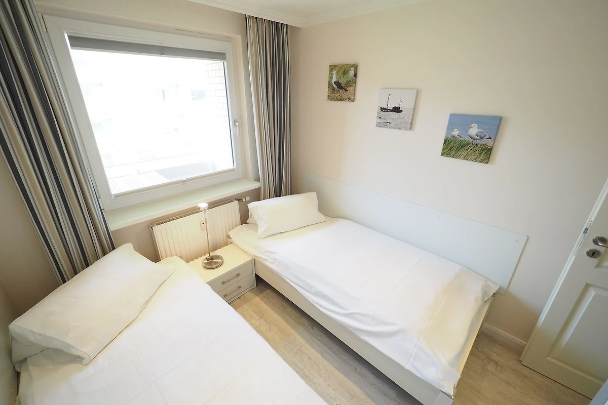 Schlafzimmer 2: Mit zwei getrennten Betten (90x200 cm), perfekt für Freunde oder Familienmitglieder.
