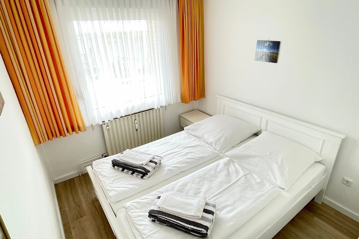 Im Schlafzimmer erwartet Sie ein komfortables Doppelbett (160 x 200 cm), das Ihnen eine erholsame Nachtruhe garantiert.