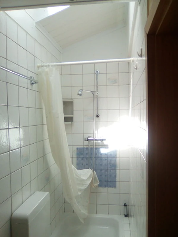 Wohnschlafraum mit Küche, Essecke, Sitzecke. Das Sofa: 2 übereck stehende Betten mit Kaltschaummatratzen und Rückenkissen zur Nacht beiseite zu stellen. das grosse Dachfenster ( Aussenjalousie Solarbetrieben ) sorgt für viel Licht. Kinderzimmer ( 2 grosse Betten, 1 Reisebett kann aufgestellt werden, Tisch und 2 Stühle), Flur, Dusche/WC, Fön. Kl. Schuppen für Fahrräder u. Spielzeug, Parkplatz. Bodenbelag: Fliesen u. PVC. Waschmaschine u. Trockner im Haus. Grosser Garten mit Sitzecken Spielgeräten, Trampolin, Tischtennis u. Grill. Die Ostsee erreichen Sie nach 4-5 Gehminuten.
