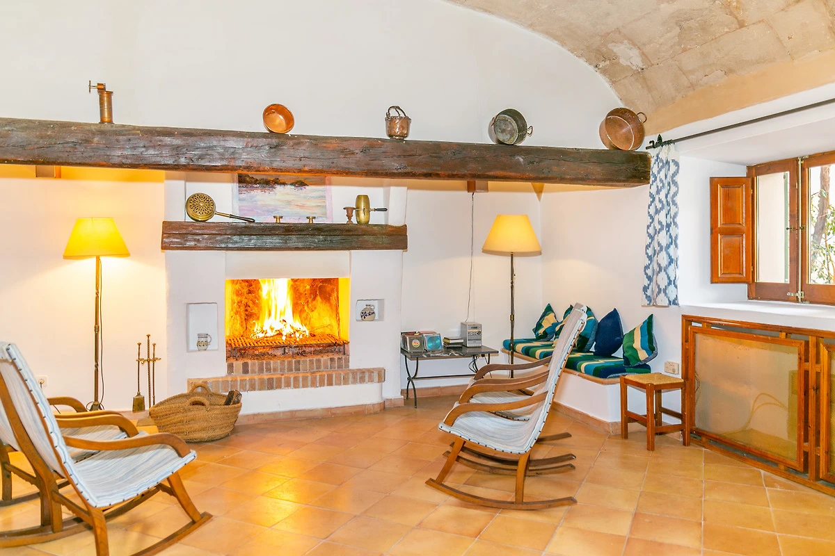 Son Esteve has a large and spacious interior, various lounge areas and one with an open fireplace. You can enjoy dining inside at the main table or there are other dining options outside.