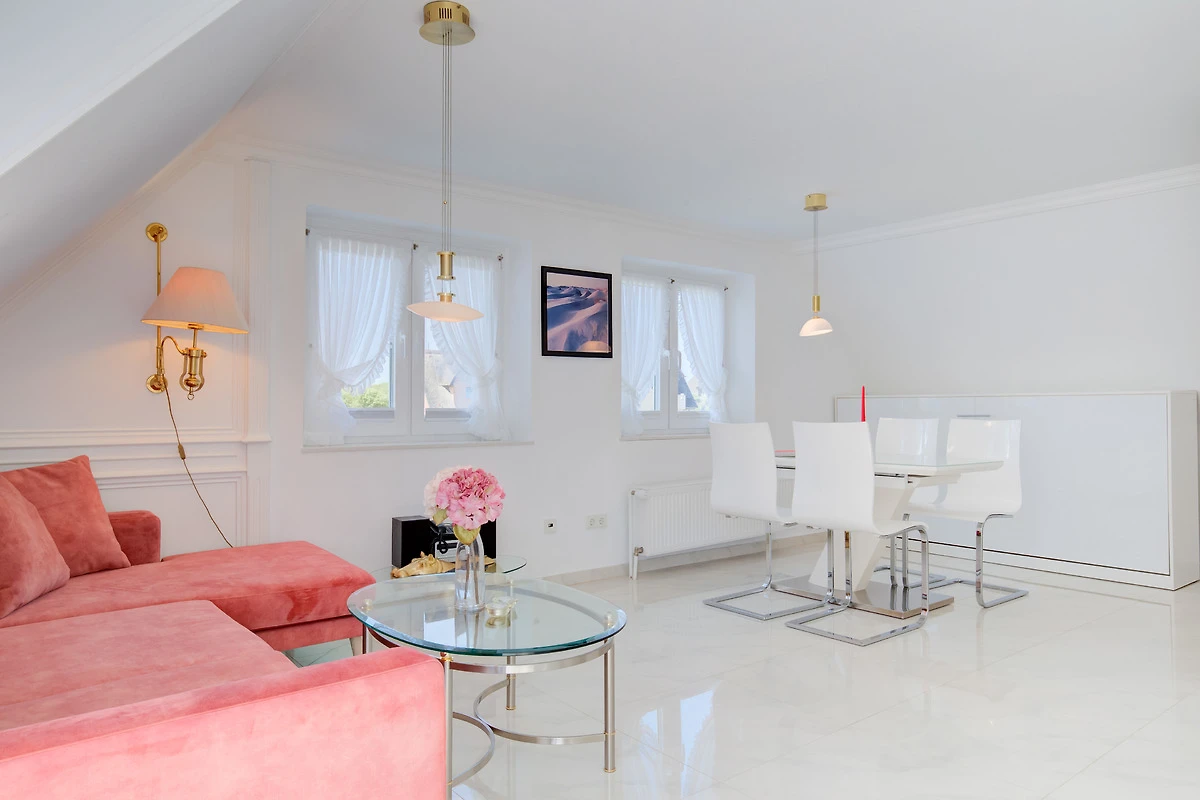 Diese charmante und lichtdurchflutete ca. 55 m² 2-Zimmer-Ferienwohnung liegt separat in einem Zweifamilienhaus. Treten sie hinein in das grosszügige Wohn/Schlafzimmer mit hochwertigen Polstermöbeln und separatem Essplatz.