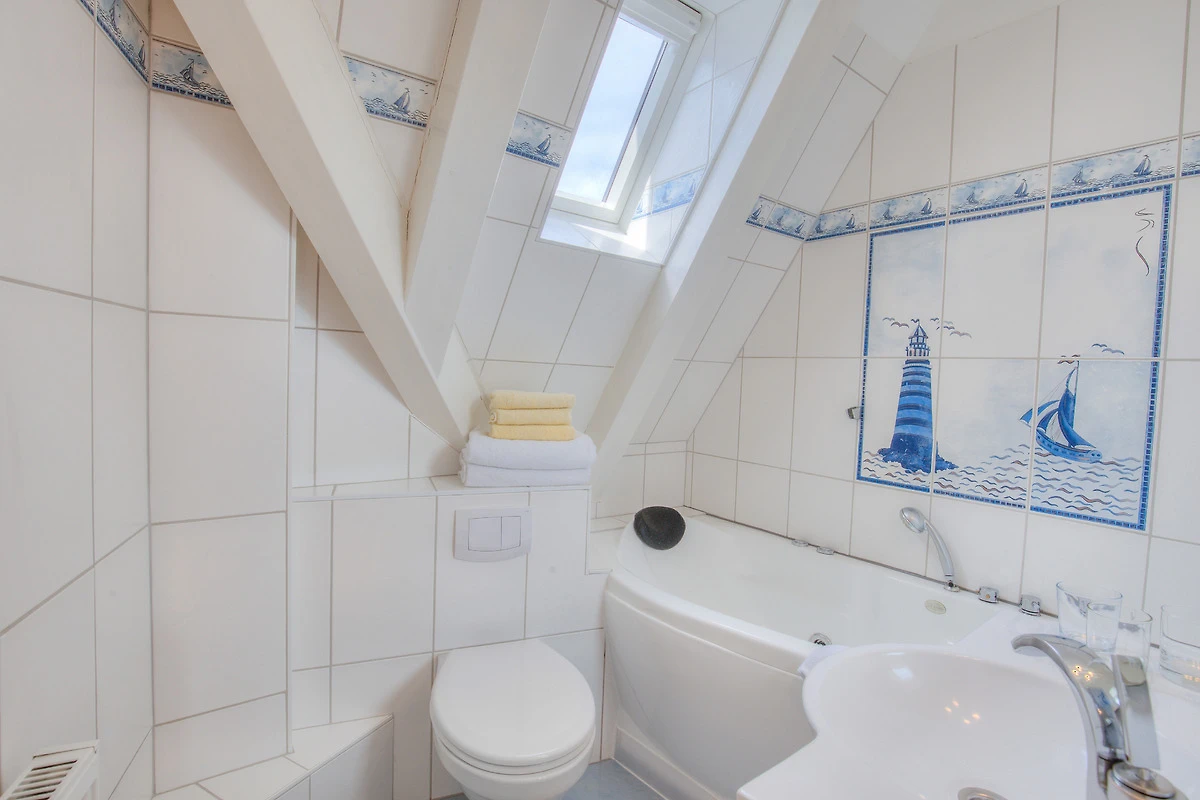Im zweiten Obergeschoss können Sie in zwei weiteren gemütlichen Schlafzimmern mit Doppelbetten und Bad mit Whirlpool entspannen. Von zwei Balkonen haben Sie einen schönen weiten Blick in Richtung Osten und Süden.