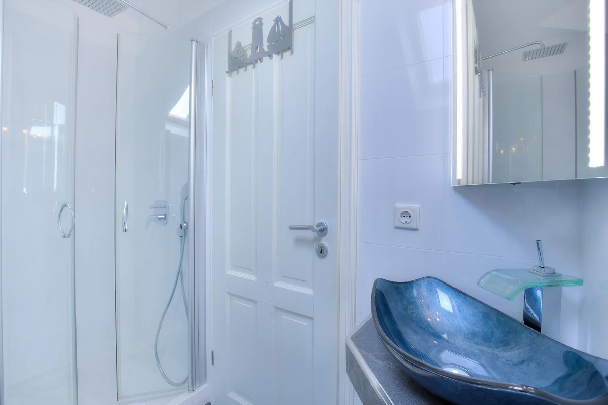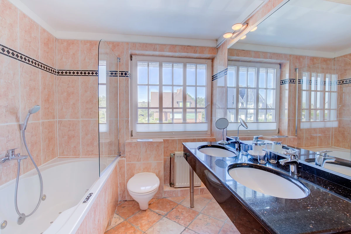 Die Sylter Sonnenstunden geniessen Sie auf dem Süd-Westbalkon. Das erste der drei Schlafzimmer, sowie ein Bad mit Whirlpool befinden sich auf dieser Ebene.