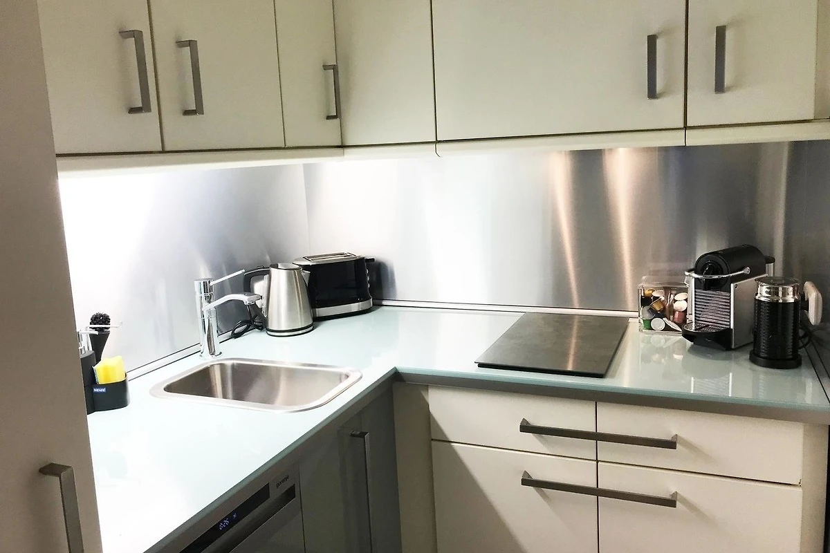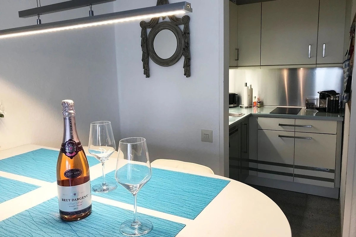Mit Betreten des Appartements können Sie vom ersten Moment an den Alltag hinter sich lassen. Vorbei am Eingang und dem angrenzendem Duschbad führt Sie der Weg in den Wohn- und Schlafbereich. Hier erwartet Sie ein grosses modernes Schlafsofa, das im „Bettumdrehen” zum gemütlichem Boxspringbett wird mit grossem Flatscreen TV. Im separatem Zimmer befindet sich ein Etagenbett (90 x 200 cm) in dem nicht nur die Kleinen Platz zum Schlafen finden sowie ein 2ter Flatscreen-TV. Die separate Küche ist mit modernster Technik ausgestattet: Induktions-Kochfeld, Geschirrspülmaschine, eine Kaffeemaschine, Mikrowelle, Wasserkocher und diverse Kleingeräte sorgen dafür, dass es Ihnen an nichts mangelt.
