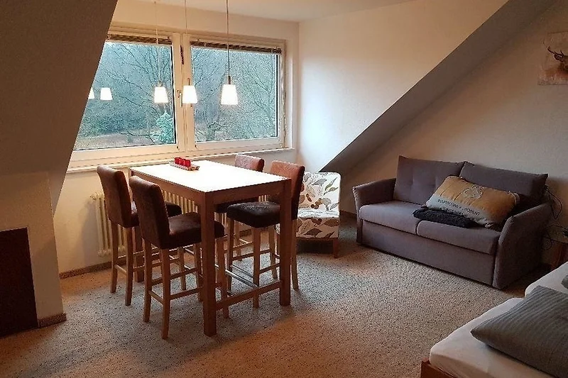 Die Ferienwohnung liegt in einer idyllischen Umgebung, umgeben von der charmanten Atmosphäre des Ortsteils Hahnenklee. In der Nähe befinden sich zahlreiche Freizeitmöglichkeiten, die zur aktiven Erholung einladen. Einmalige Wander- und Radwege beginnen nur wenige Gehminuten entfernt. Naturliebhaber können das angrenzende Gewässer zum Angeln nutzen, während Familien auf den nahegelegenen Spielplätzen entspannen können. Für sportliche Aktivitäten stehen Nordic Walking-Strecken bereit, und Vogelfreunde haben die Möglichkeit, vielfältige Arten zu beobachten. Ausserdem sind eine Minigolfanlage sowie kulturelle Einrichtungen in kurzer Distanz erreichbar. Die Anreise gestaltet sich einfach; die nächstgelegene Stadt ist nur 25 Kilometer entfernt, wodurch die Ferienwohnung ideal für einen erholsamen Urlaub in der Natur ist.