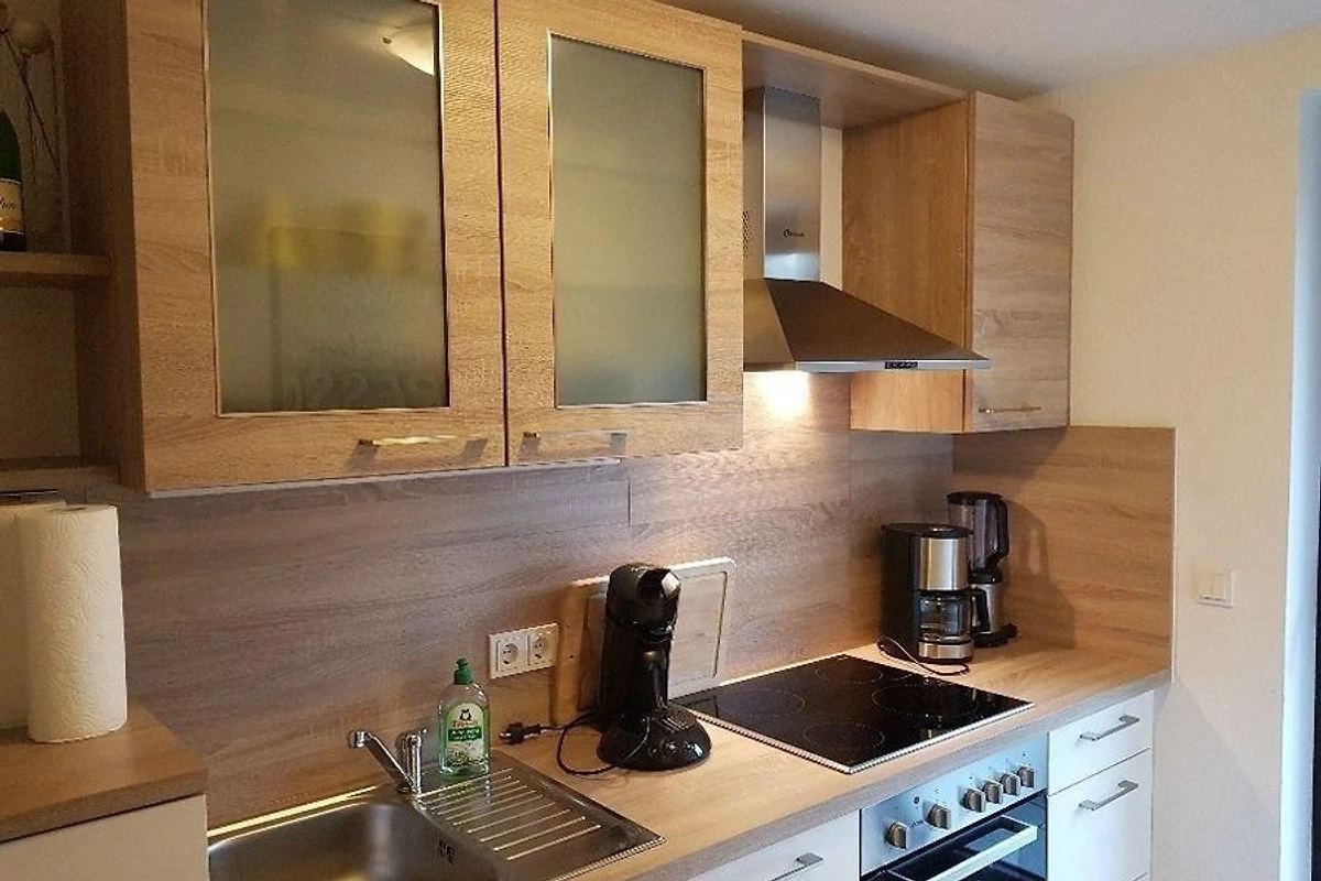 Die Ferienwohnung bietet eine komfortable und moderne Ausstattung, die ideal für entspannte Aufenthalte geeignet ist. Sie verfügt über ein gemütliches Schlafzimmer mit einem Doppelbett und ein stilvolles Duschbad, das für Allergiker geeignet ist.