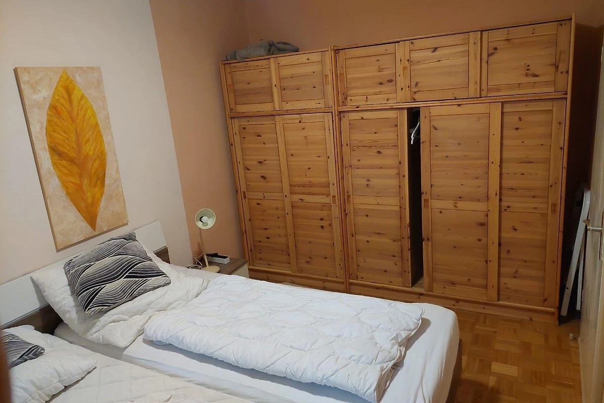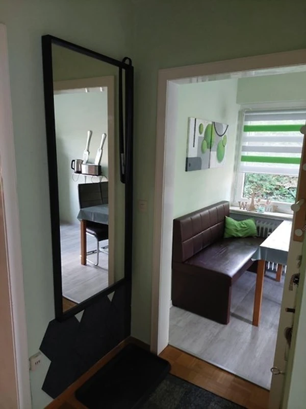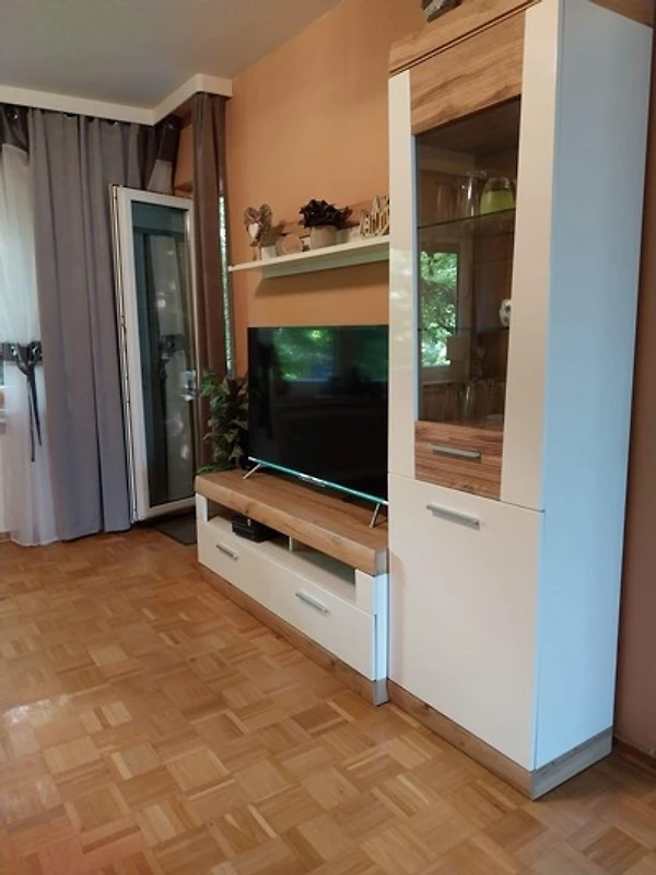Die Ferienwohnung bietet einen komfortablen Rückzugsort mit einem geschmackvoll eingerichteten Schlafzimmer, das mit zwei Doppelbetten ausgestattet ist. Die separate Küche überzeugt durch moderne Annehmlichkeiten wie einen Geschirrspüler, einen Elektro-/Gasherd, einen Backofen und einen Kühlschrank sowie weiteren hilfreichen Geräten wie einer Kaffeemaschine, einem Toaster und einem Wasserkocher. Der grosszügige Esstisch lädt zu gemeinsamen Mahlzeiten ein.