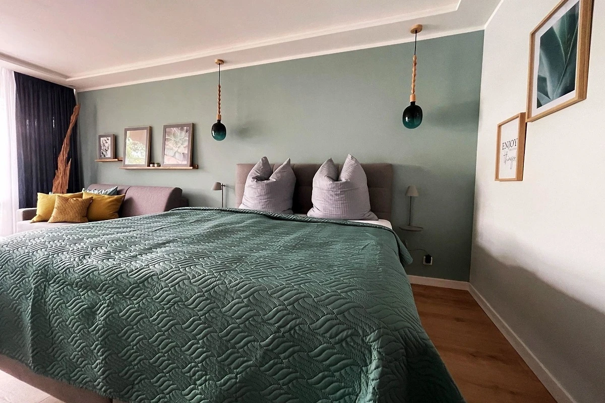 Die Ferienwohnung bietet eine komfortable und gut ausgestattete Unterkunft für entspannte Tage. Sie verfügt über ein Schlafzimmer mit einem gemütlichen Doppelbett sowie ein Wohnschlafzimmer, das mit einer Schlafcouch ausgestattet ist. Das zeitgemässe Duschbad verfügt über einen Haartrockner und ist funktional gestaltet.