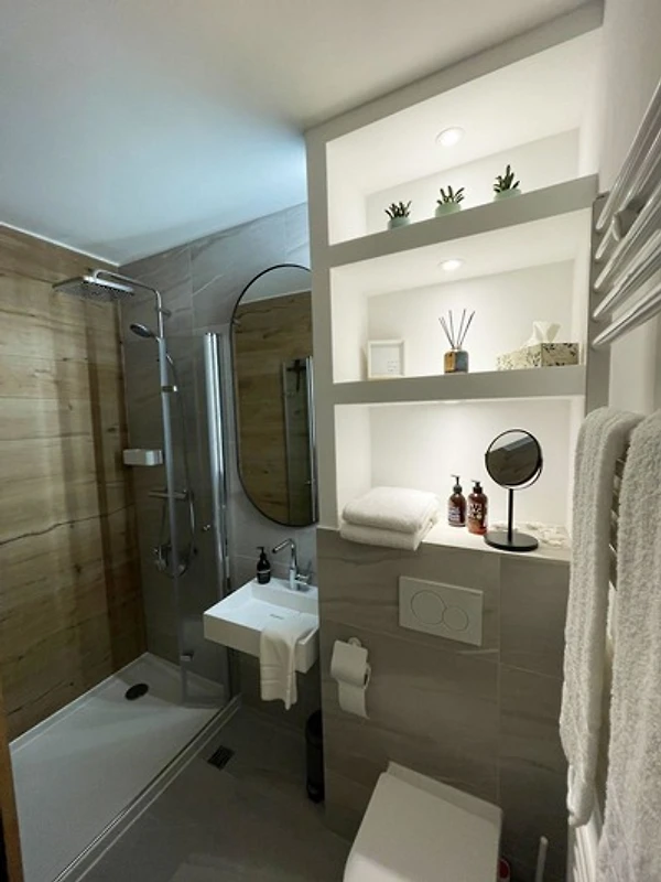 Die Wohnung ist nicht nur mit einer Heizung, sondern auch mit einem Fernseher ausgestattet. Ein Fahrstuhl erleichtert den Zugang. Rauchmelder und eine Garderobe runden das Angebot ab und sorgen für Sicherheit und Komfort während des Aufenthalts.