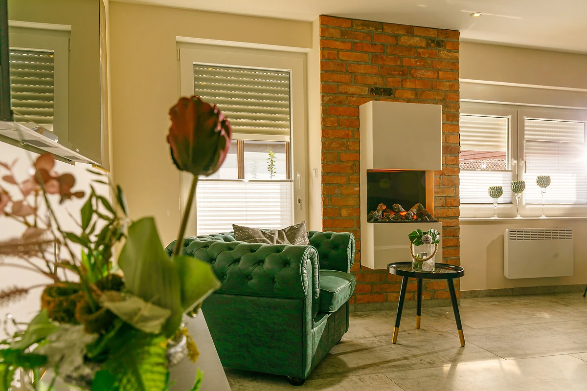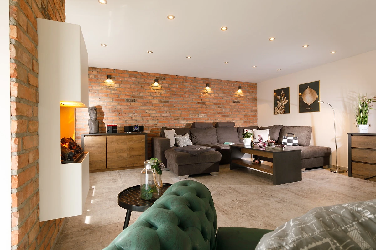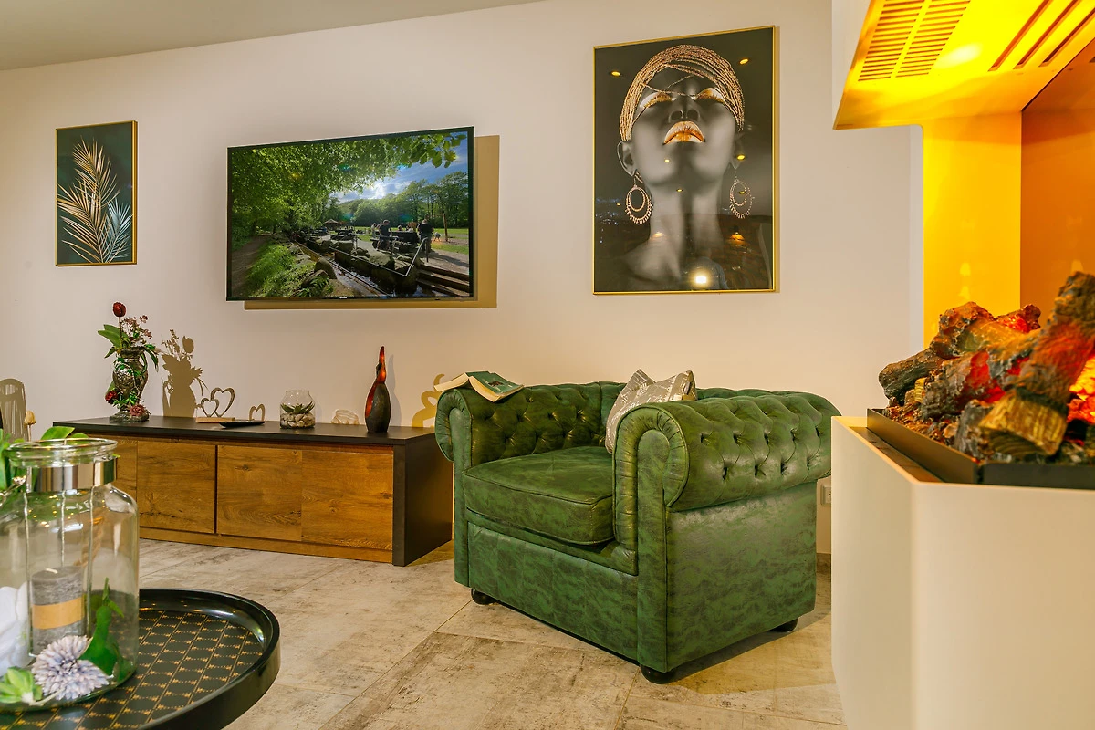 - NEU: Wohnzimmer mit einer grosszügigem Ausziehcouch mit Platz für 8 Personen, grossen Flat- TV, virtuellen Kamin etc.