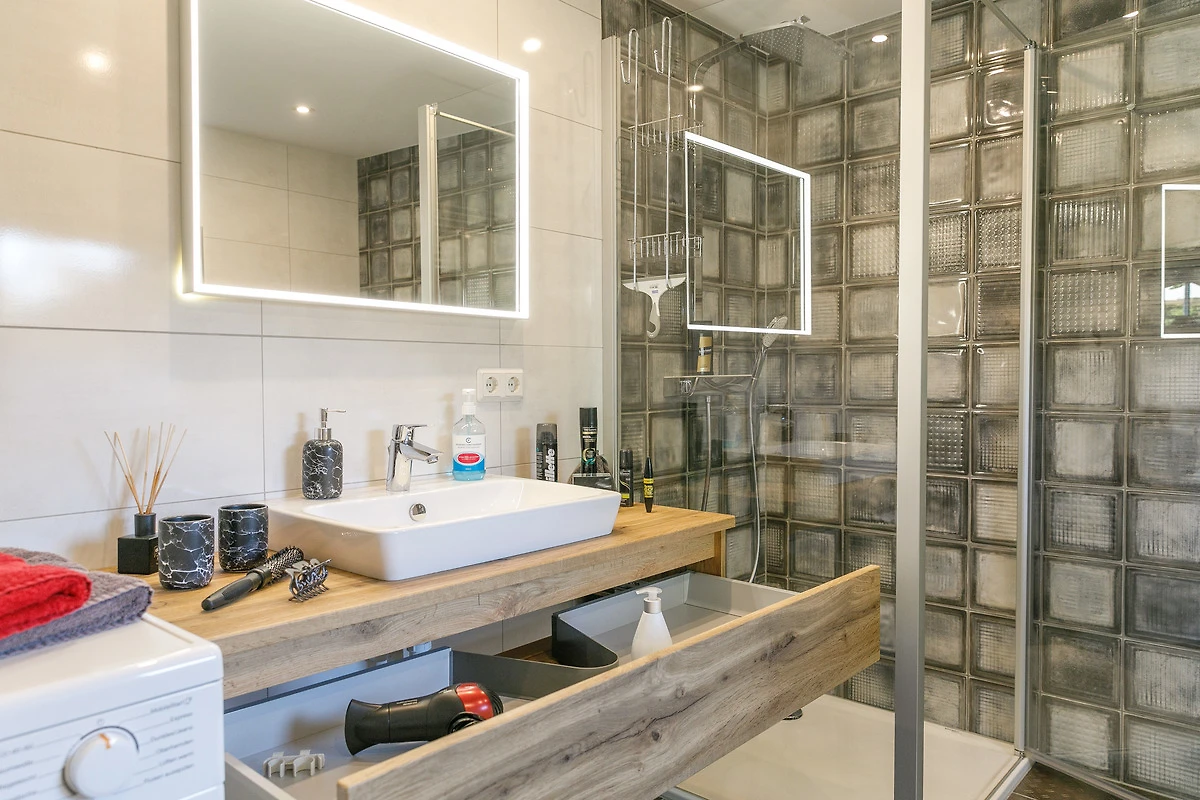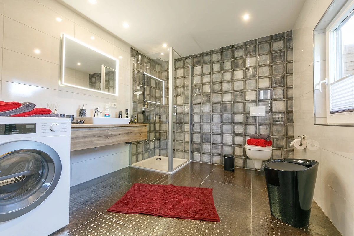 - NEU: geräumiges Bad mit Dusche, WC und Waschplatz, Föhn, Waschmaschine, Wäschetrockner
